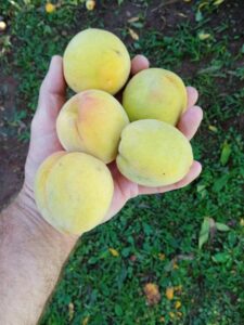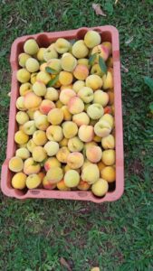 E agora foi a época da fartura da colheita do pêssego. Uma arvore rendeu cerca de 100kg de pêssego. Foi trabalho para vários dias. E uma das brincadeiras é: quem sabe o que tem de sobremesa hoje? todos sorriam e dizem- pêssego. Uns gostam mais outros menos. É a diversidade de gostos.
