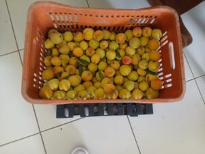 E agora foi a época da fartura da colheita do pêssego. Uma arvore rendeu cerca de 100kg de pêssego. Foi trabalho para vários dias. E uma das brincadeiras é: quem sabe o que tem de sobremesa hoje? todos sorriam e dizem- pêssego. Uns gostam mais outros menos. É a diversidade de gostos.
