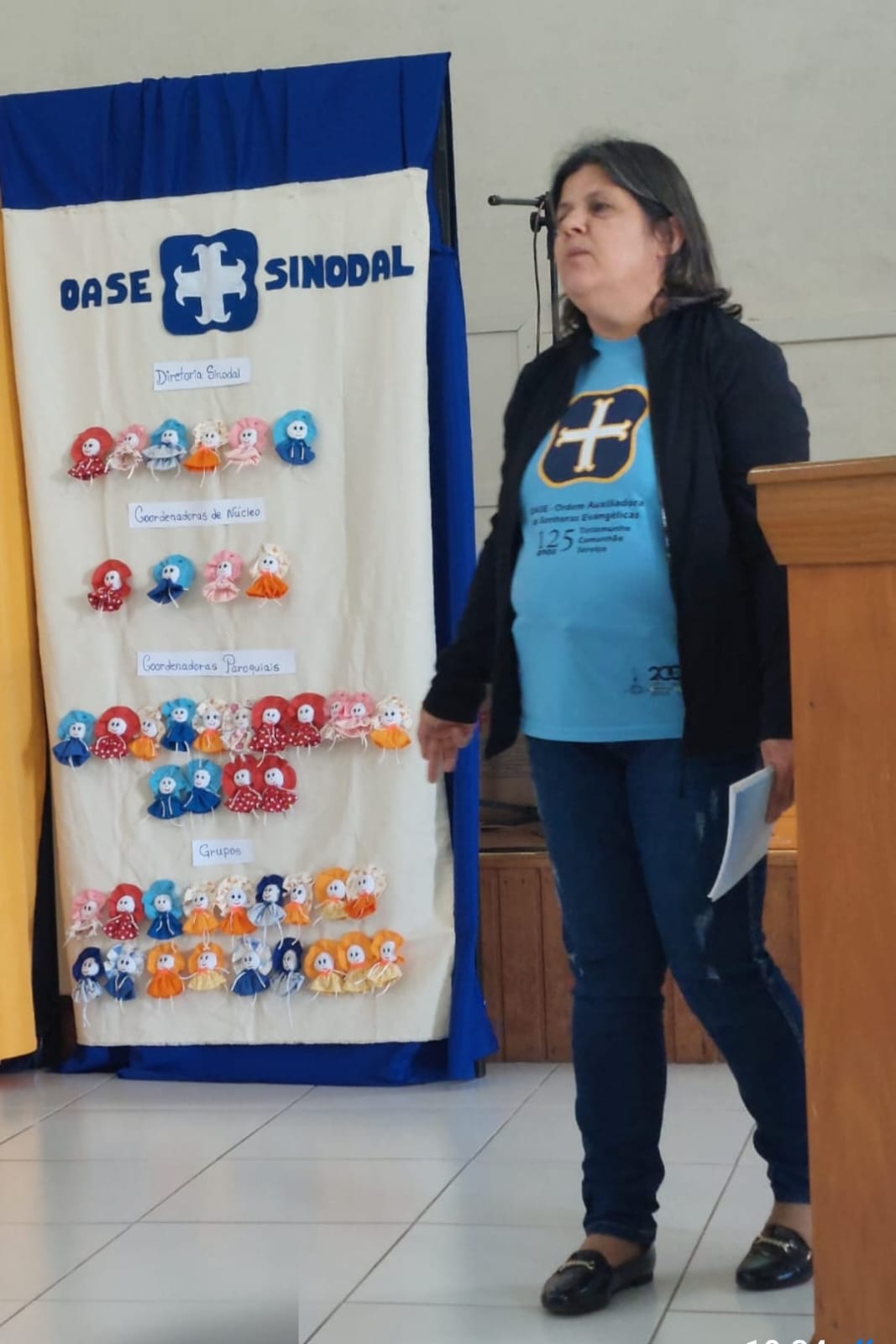 A Pastora Tânia Cristina Weimer, pastora orientadora teológica da OASE Sinodal, conduziu o tema trazendo um estudo dinâmico a partir do texto de 1 Coríntios 12.12-27. “Muitas vezes pensamos: será que meu trabalho é reconhecido? Será que vale a pena tanto esforço? A palavra de Deus nos lembra: sim, cada esforço vale a pena, pois é Deus quem sustenta e dá sentido ao serviço (servir)” lembrou a pastora Tânia. “Coordenadoras são multiplicadoras de esperança e fé. Deus nos chamou para servir, e no serviço, mesmo que pareça simples, nós fazemos a diferença”, concluiu a pastora Tânia.