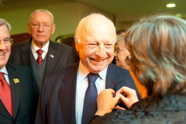 Na sequência, Jorge Gerdau recebeu um troféu, como recordação do evento, entregue pelo Presidente da CEPA, e a sua esposa, Maria Elena Pereira Johannpeter, recebeu flores das mãos da Pastora Isabel Toillier, Ministra na Paróquia São Lucas, frequentada pela família.
