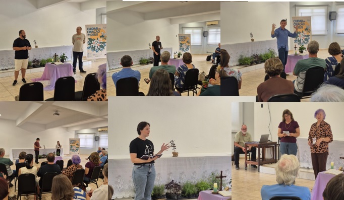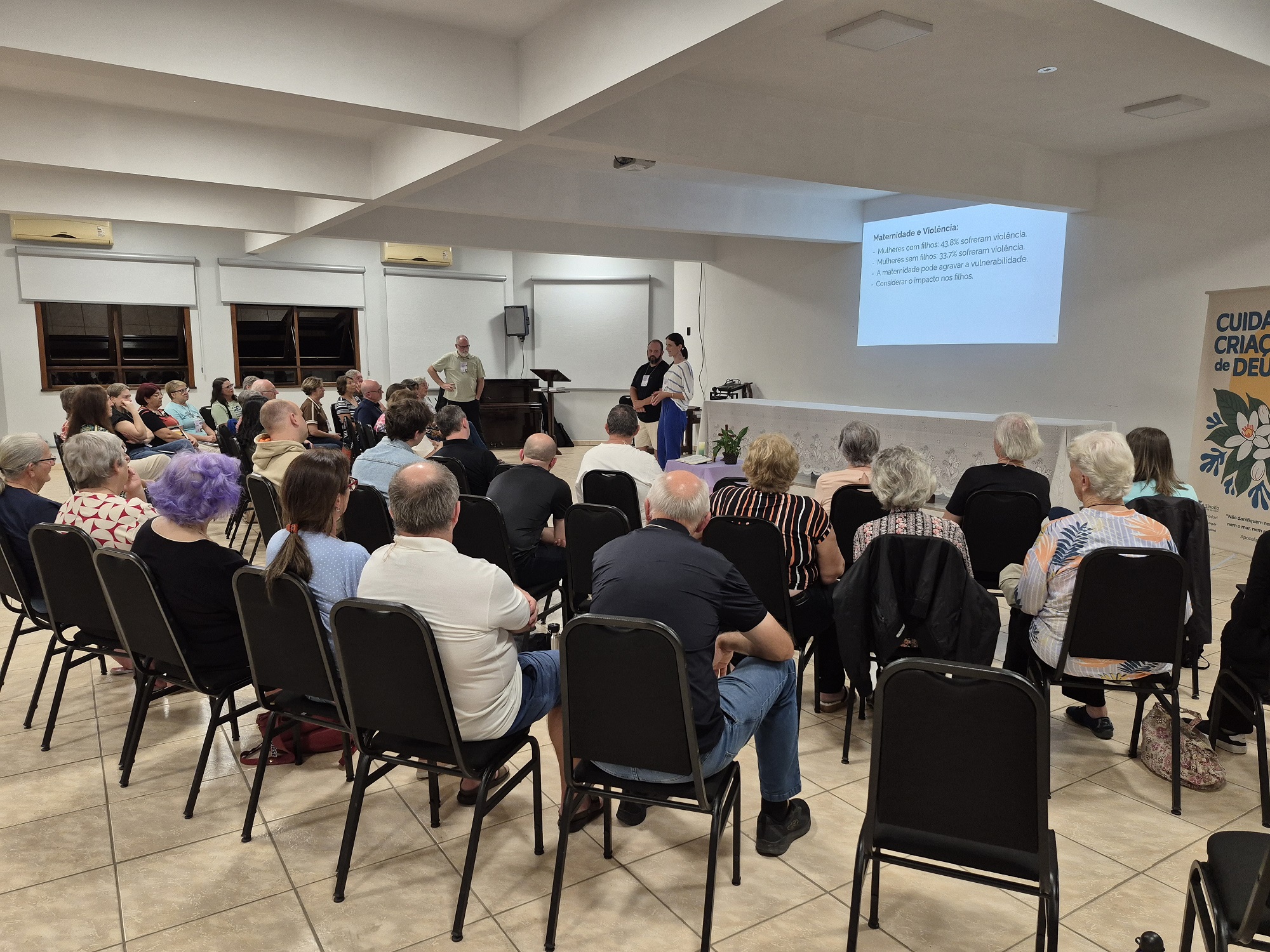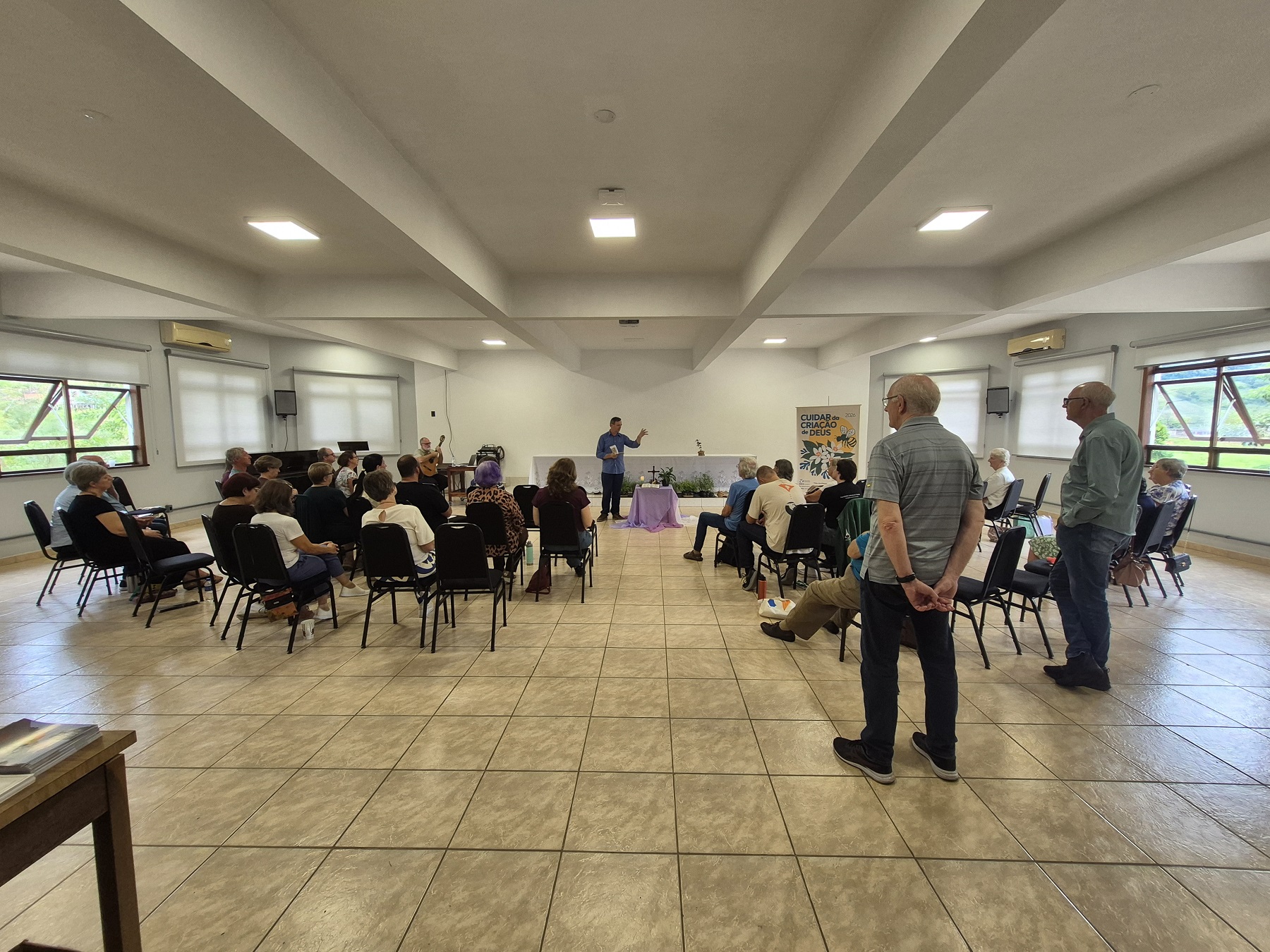 Para falar do cuidado com a criação de Deus, assunto da palestra principal, o P. em. Werner Fuchs, de forma simples, mas sem perder a profundidade, apresentou um conteúdo consistente e biblicamente bem embasado. Com o objetivo de responder a perguntas como “Por que cuidar?…Como cuidar?”, P. Werner usou de metodologia bastante participativa, somada a dados e informações atualizadas.