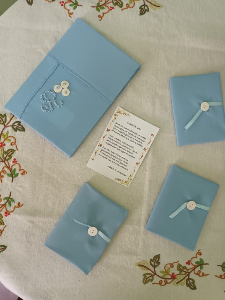 O vestido azul No encontro anual da Irmandade Evangélica Luterana, em sua sede a Casa Matriz de Diaconisas em São Leopoldo/RS cada irmã recebeu uma caderneta encapada com pedaços dos