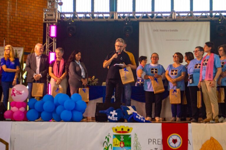 Elas foram chegando e ocupando o espaço reservado no Ginásio Municipal de São José do Hortêncio para a realização do Dia Sinodal da OASE. Cerca de 500 mulheres representando os