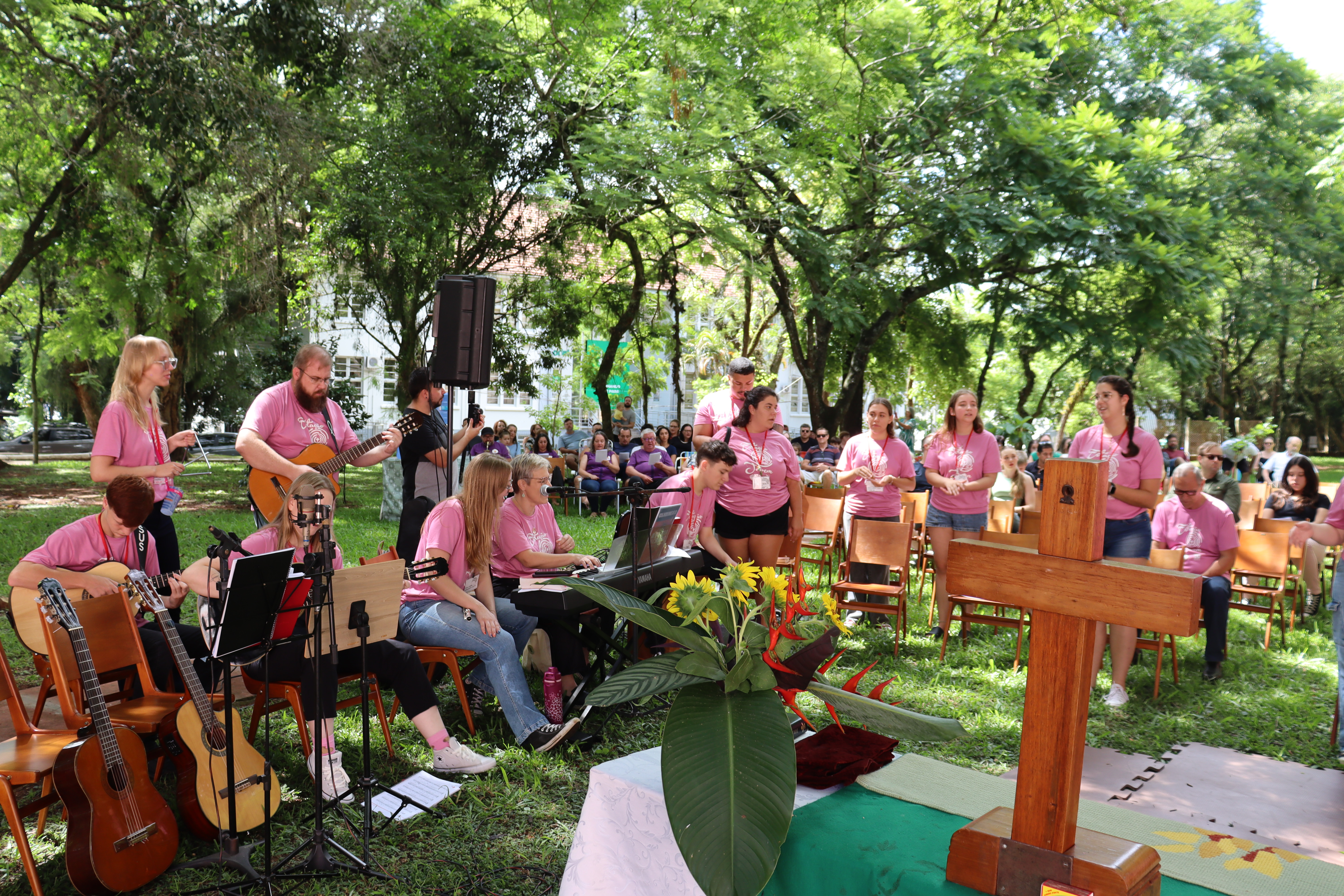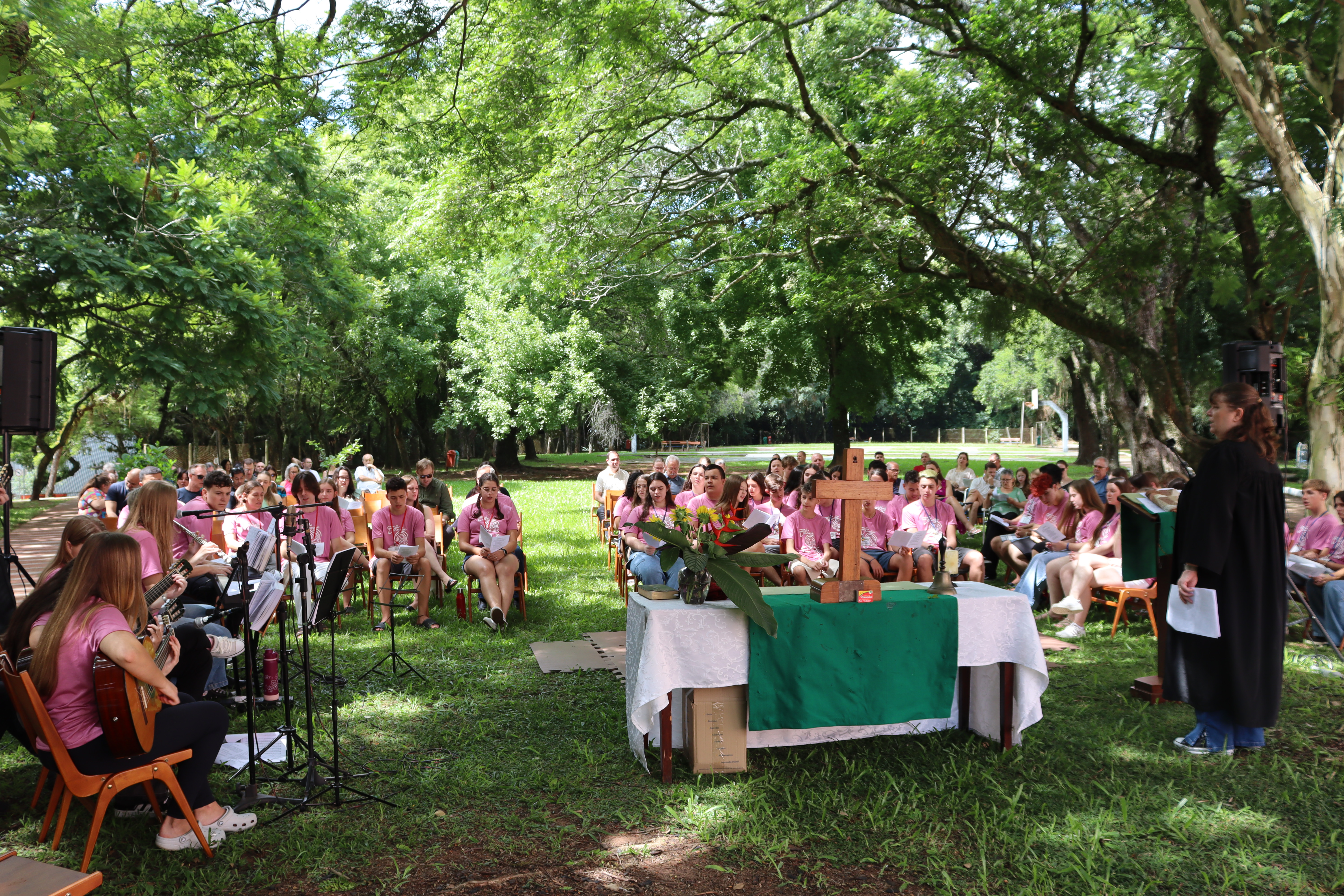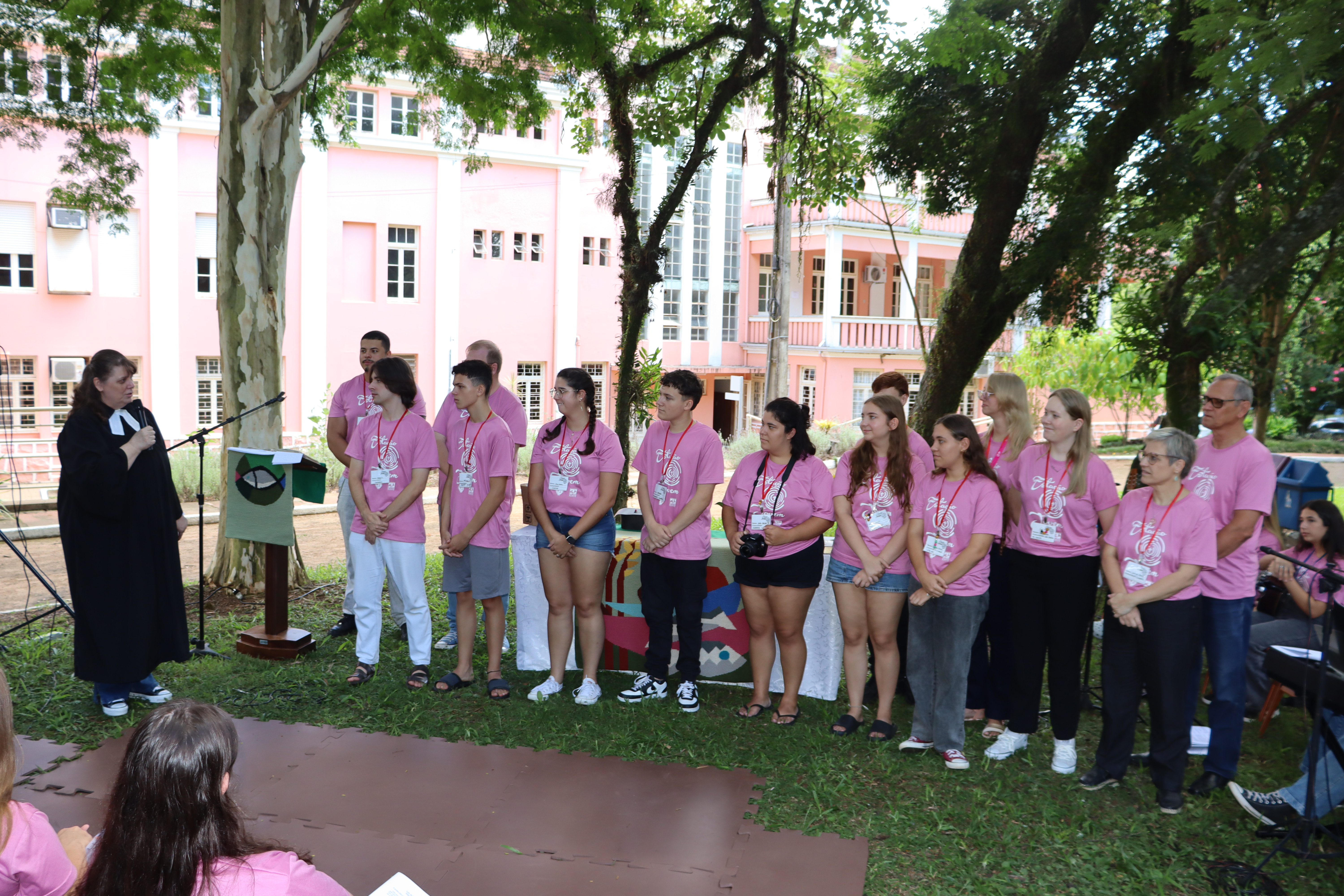 A solenidade de formatura ocorreu junto ao culto de encerramento na manhã de domingo de 1º de fevereiro, junto à sombra do amplo espaço verde da Faculdades EST, indo ao encontro do Tema do Ano da IECLB – Cuidar da Criação de Deus. O momento reuniu as pessoas jovens participantes, coordenação, ministros, ministras e familiares.