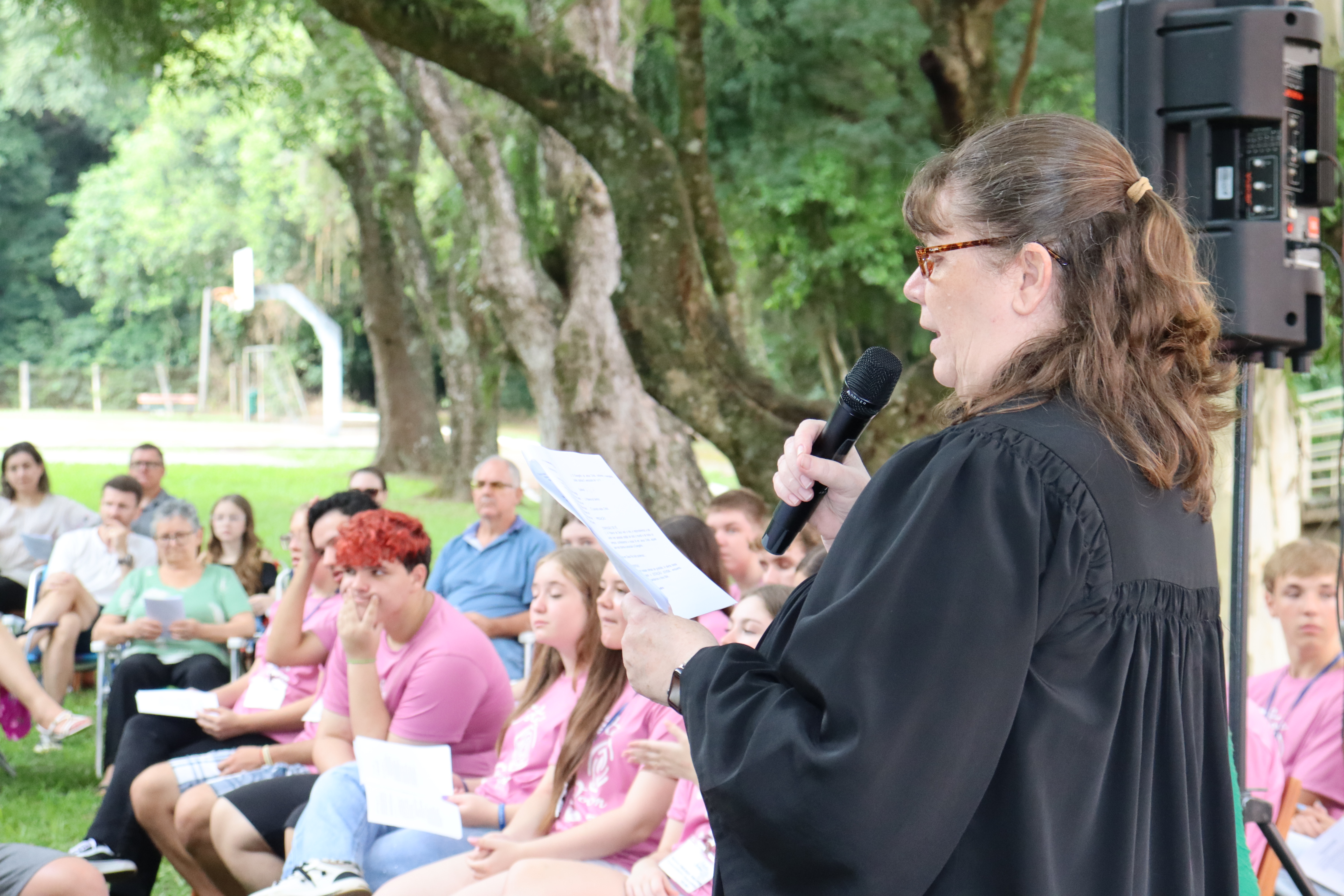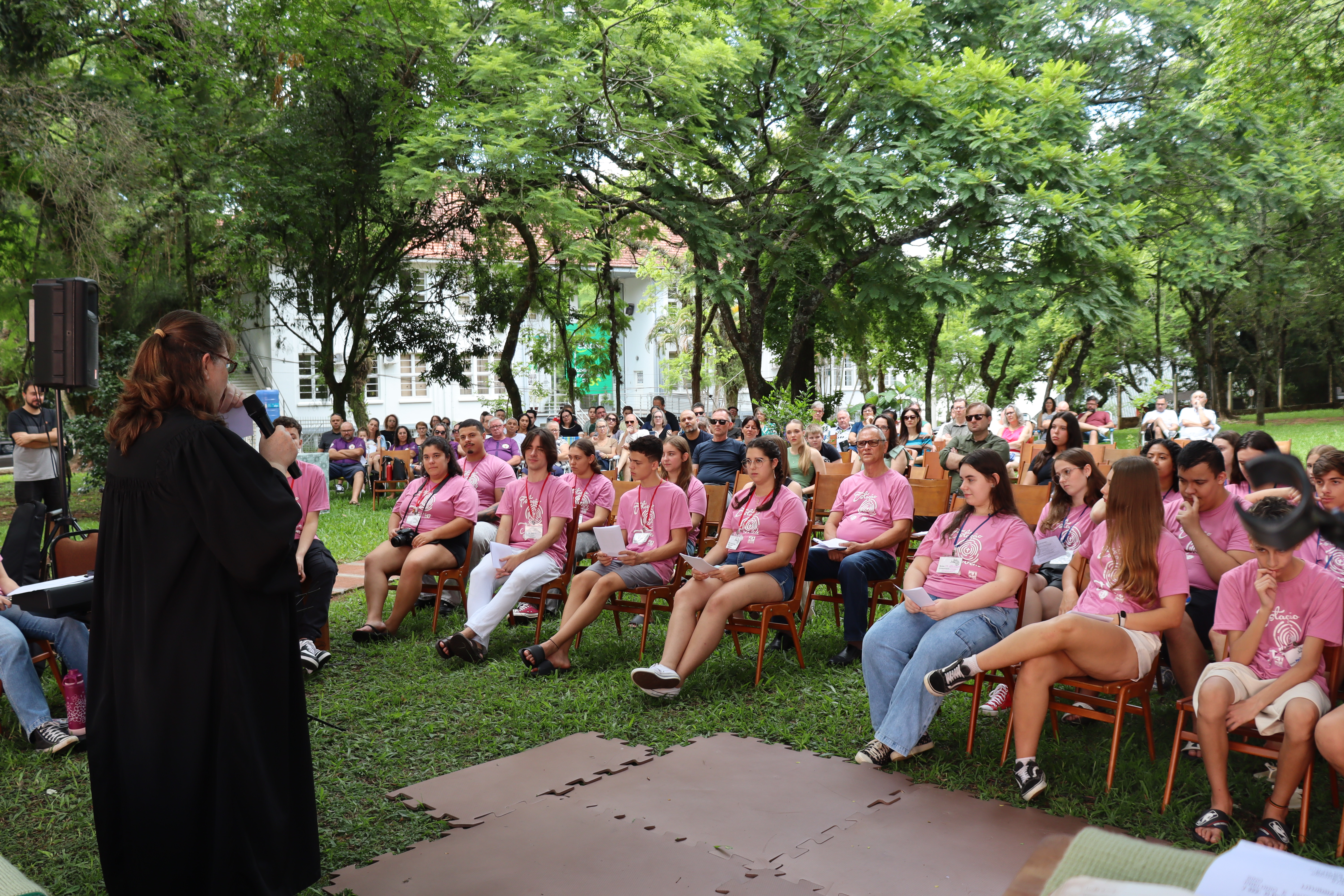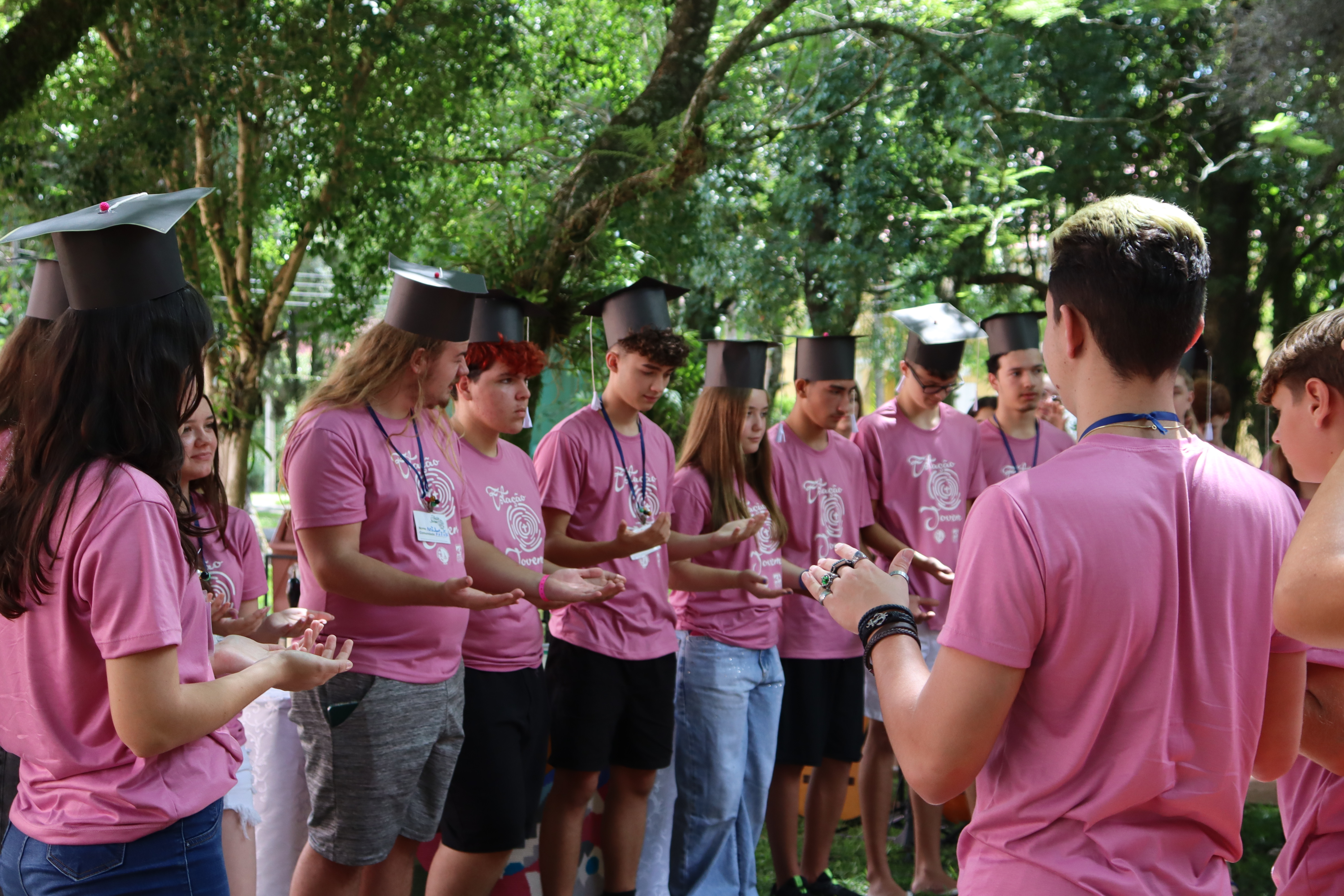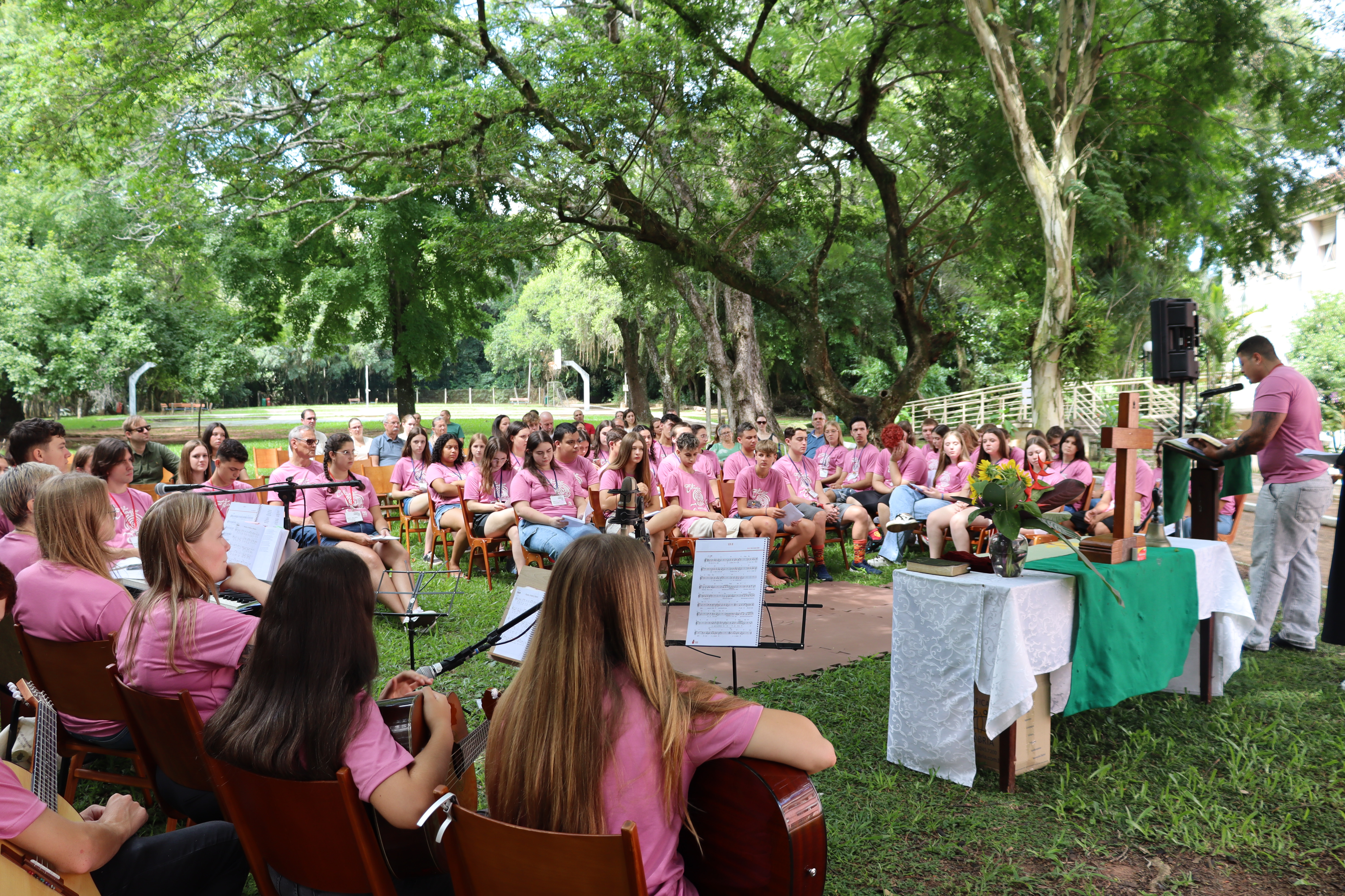 A solenidade de formatura ocorreu junto ao culto de encerramento na manhã de domingo de 1º de fevereiro, junto à sombra do amplo espaço verde da Faculdades EST, indo ao encontro do Tema do Ano da IECLB – Cuidar da Criação de Deus. O momento reuniu as pessoas jovens participantes, coordenação, ministros, ministras e familiares.