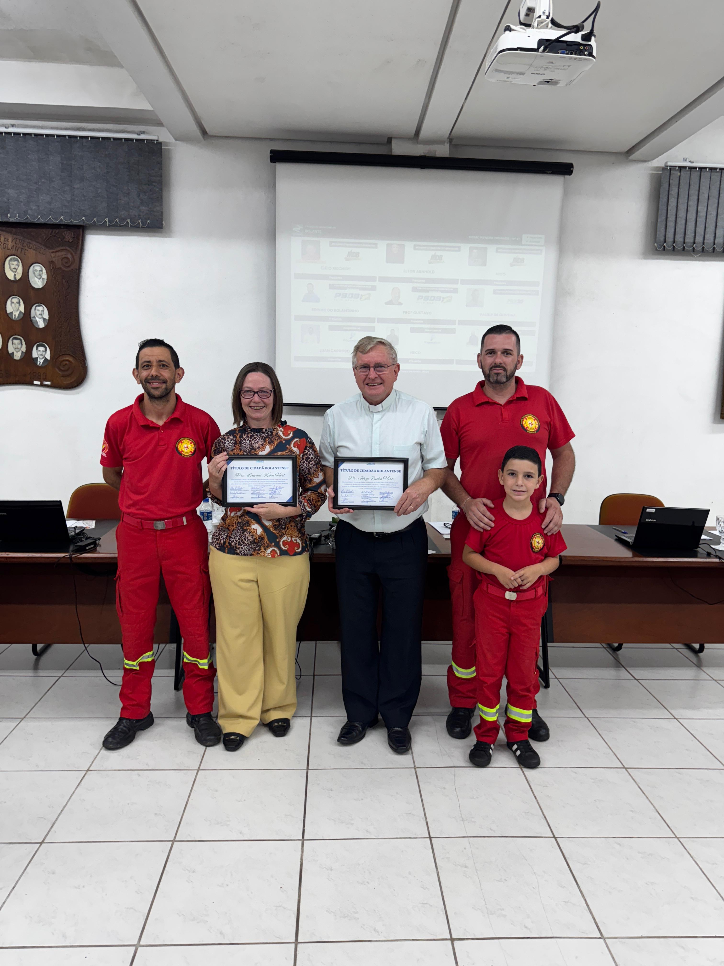 Como despedida levamos em nossa bagagem e sentimento de gratidão pelo reconhecimento oferecido pela Câmara de Vereadores de Rolante, na pessoa dos vereadores proponentes Élcio Ricardo Reichert e Elton Arnhold, com assinatura e concordância dos demais vereadores, o título de Cidadão e Cidadã Rolantense.