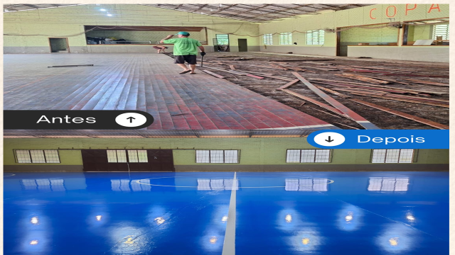 Celebramos a união e o esforço e dedicação de todos e todas que tornaram este sonho possível. Que este espaço renovado seja palco de muitas histórias, encontros e momentos inesquecíveis para nossa comunidade. Que o barracão continue sendo um lugar de acolhimento, alegria e união para nós! Com o coração cheio de gratidão, inauguramos o novo piso, símbolo de progresso e cuidado com nosso espaço comunitário.