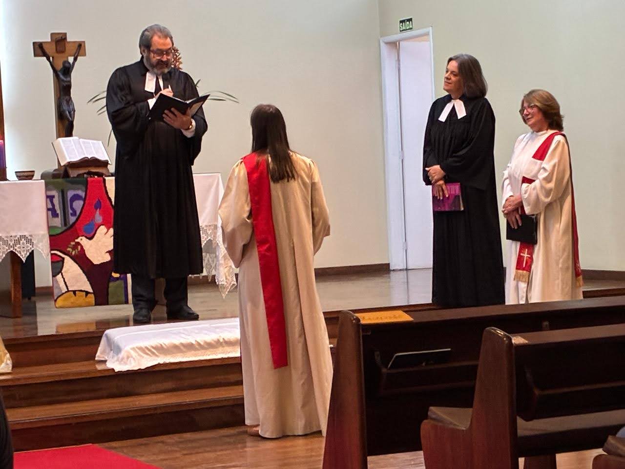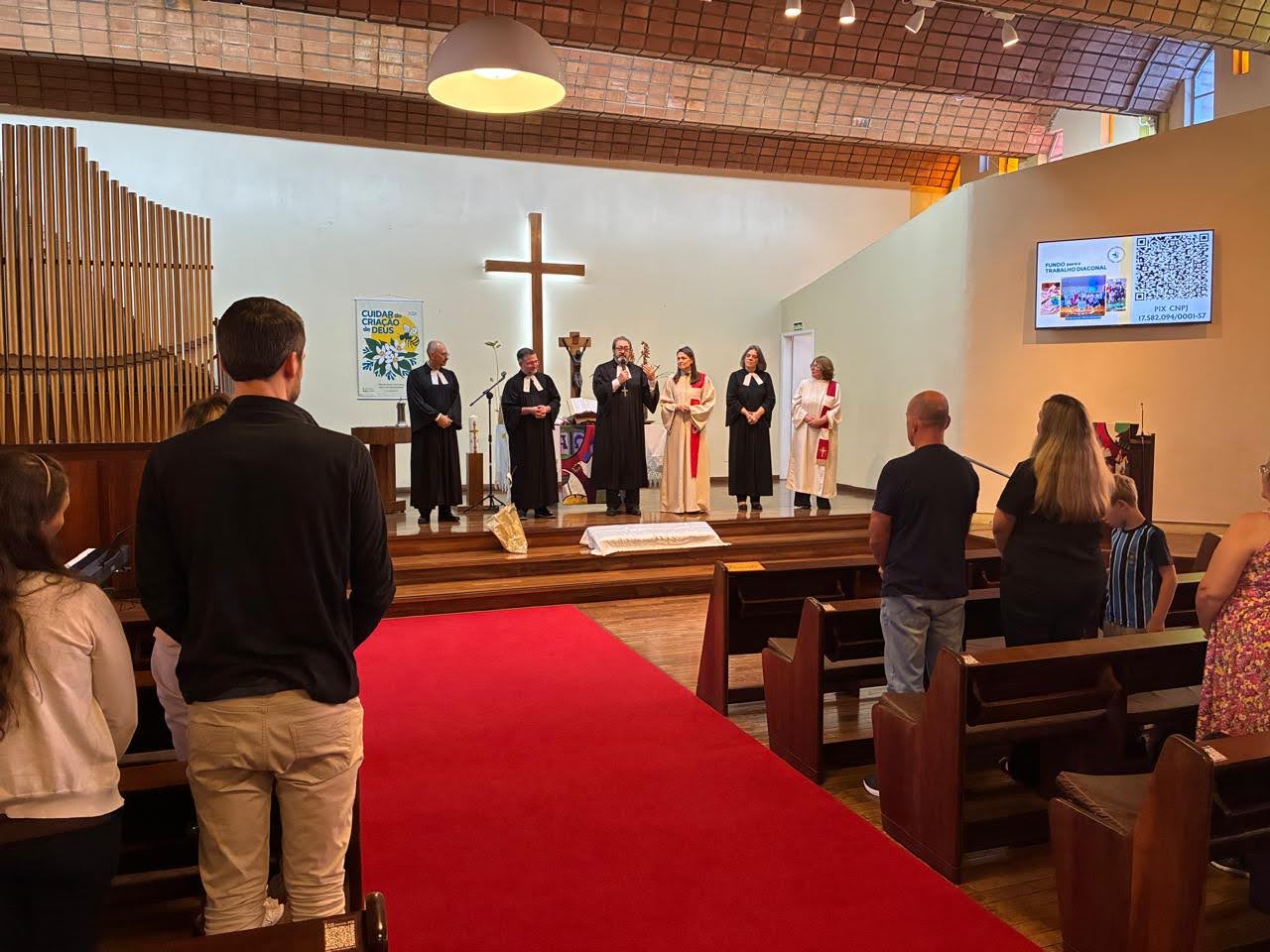 Durante o culto de instalação, a comunidade ainda celebrou outro momento especial: o jubileu de 25 anos de ordenação do pastor Claus Martin Dreher, completados em 10 de março. O momento foi conduzido em conjunto pela catequista Daniela, o pastor sinodal Carlos, a pastora Ruth, que atua como voluntária na Comunidade Martin Luther, e o pastor Valdemar Schultz, da Pastoral Escolar do Colégio Pastor Dohms.