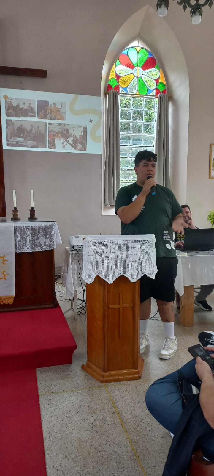 O jovem Luiz Seidel, representante sinodal no Conselho Nacional da Juventude Evangélica, apresentou a avaliação do CONGRENAJE realizado em Igrejinha, agradecendo o apoio das comunidades. Representantes reforçaram a importância do evento para o fortalecimento das juventudes e para o surgimento de novas lideranças.