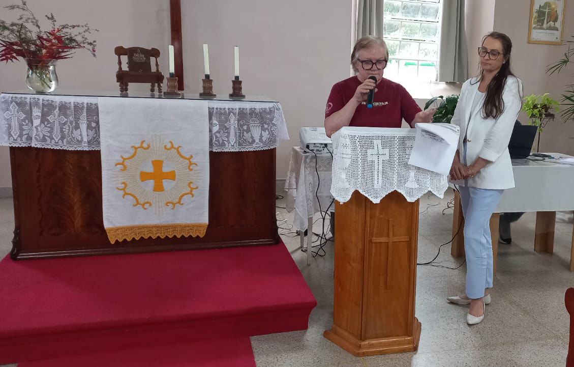 A tesoureira Iloiva Schmitt e a vice-tesoureira Patrícia van Groll apresentaram o relatório financeiro parcial de 2025 e o orçamento sinodal para 2026. Ambos foram aprovados por unanimidade.