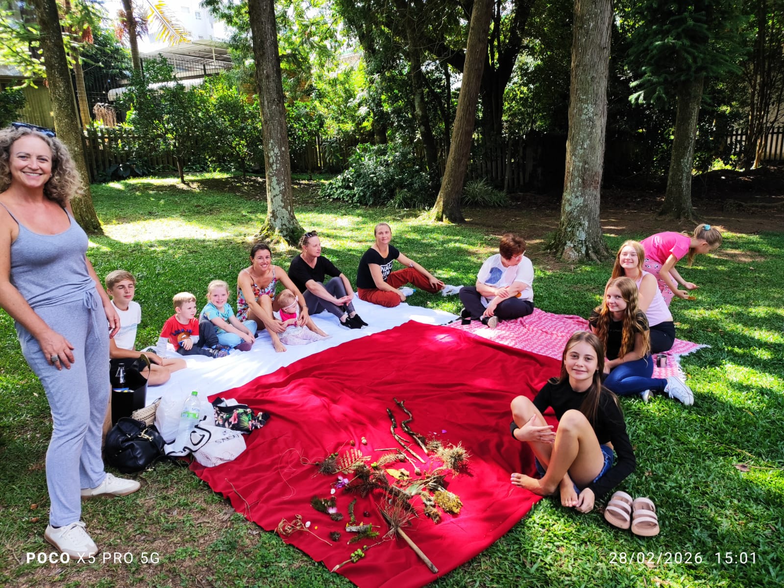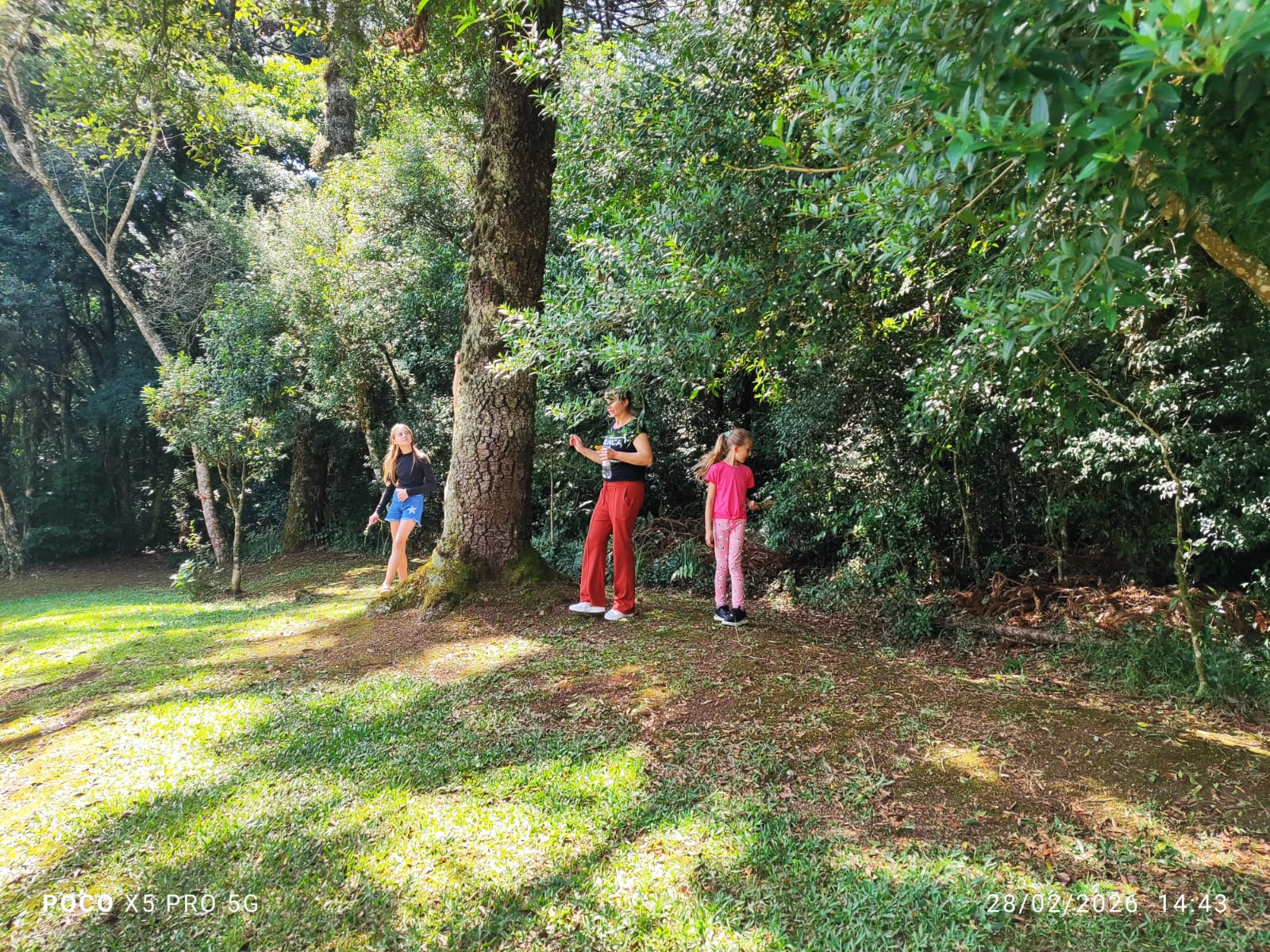 Durante o passeio guiado pelas orientadoras, palavras motivadoras nos convidaram a contemplar o nosso papel no cuidado da criação divina. A Quaresma nos chama à reflexão sobre como podemos zelar pelo mundo ao nosso redor. Assim, ao longo da caminhada, nos dedicamos a recolher galhos secos, folhas, casulos de borboleta vazios, cigarras secas, sementes e pequenos raminhos, cada um deles contando uma história de transformação e continuidade.