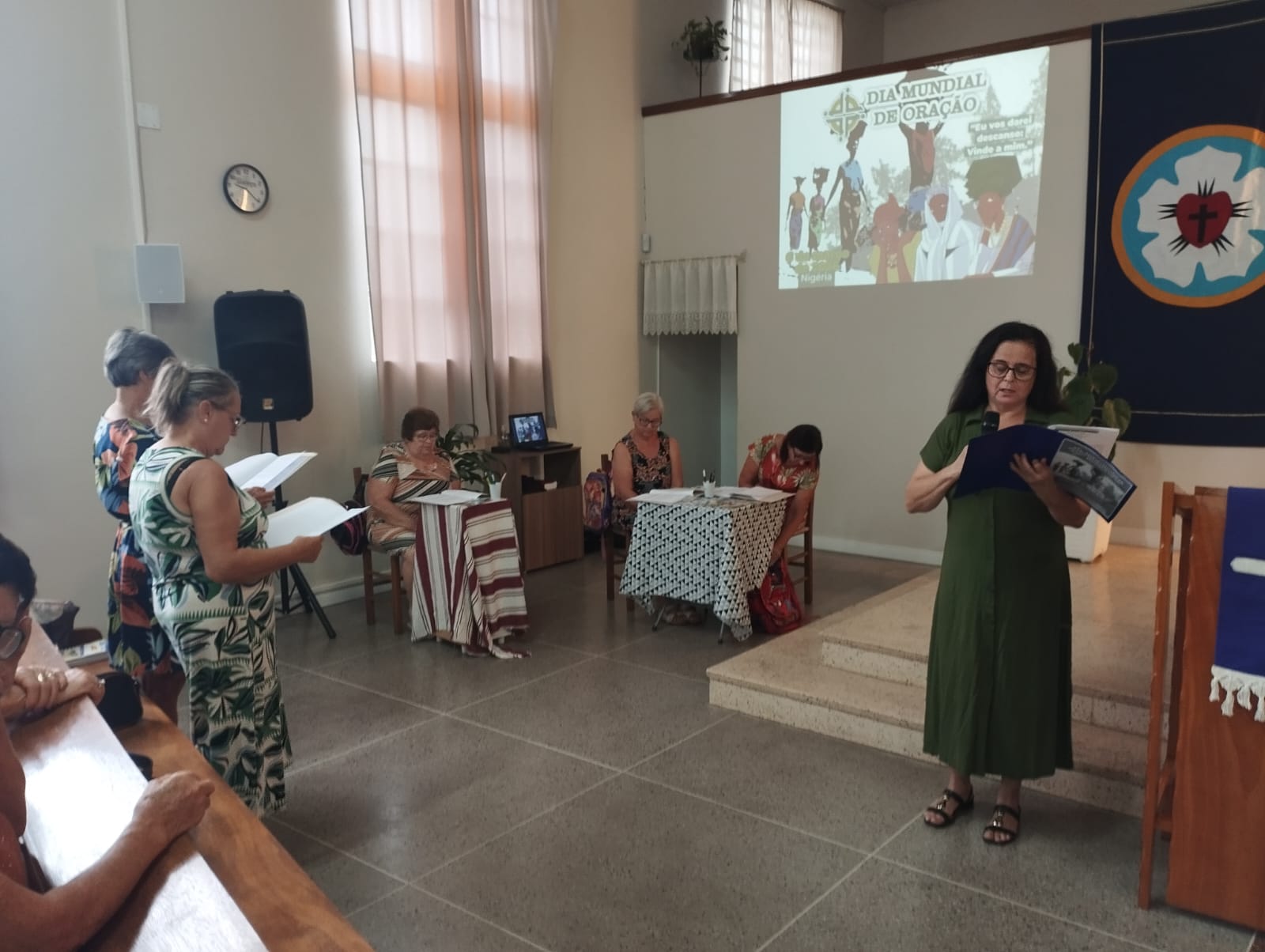 Durante o culto foram lidas histórias de vida de mulheres da Nigéria. Oramos por elas e por outros motivos de intercessão. Agradecemos ao bondoso Deus pelo maravilhoso culto do Dia Mundial de Oração.