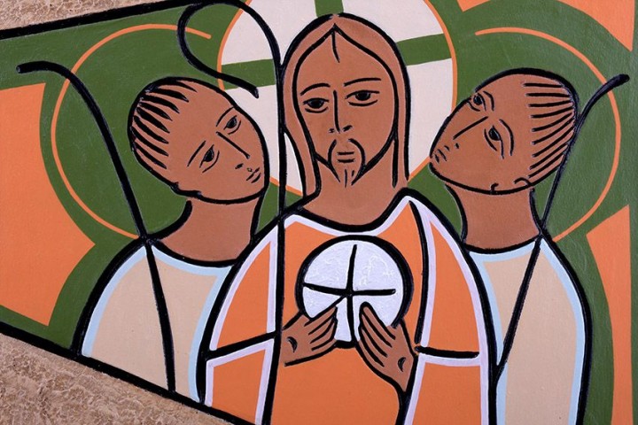 AO SE APROXIMAREM DO POVOADO DE EMAÚS, JESUS DISSE QUE SEGUIRIA ADIANTE. MAS, ELES INSISTIRAM: A NOITE JÁ VEM. O DIA JÁ ESTÁ QUASE FINDANDO. FIQUE CONOSCO! ENTÃO, ELE ENTROU PARA FICAR COM ELES. QUANDO ESTAVA À MESA, TOMOU O PÃO, DEU GRAÇAS, PARTIU E O DEU AOS AMIGOS. SOMENTE AÍ FOI QUE O RECONHECERAM. NESSE EXATO MOMENTO, JESUS DESAPARECEU. PERGUNTARAM-SE UM AO OUTRO: NO CAMINHO, NÃO ESTAVA ARDENDO O NOSSO CORAÇÃO DENTRO DO PEITO, ENQUANTO ELE NOS FALAVA E EXPUNHA AS ESCRITURAS?