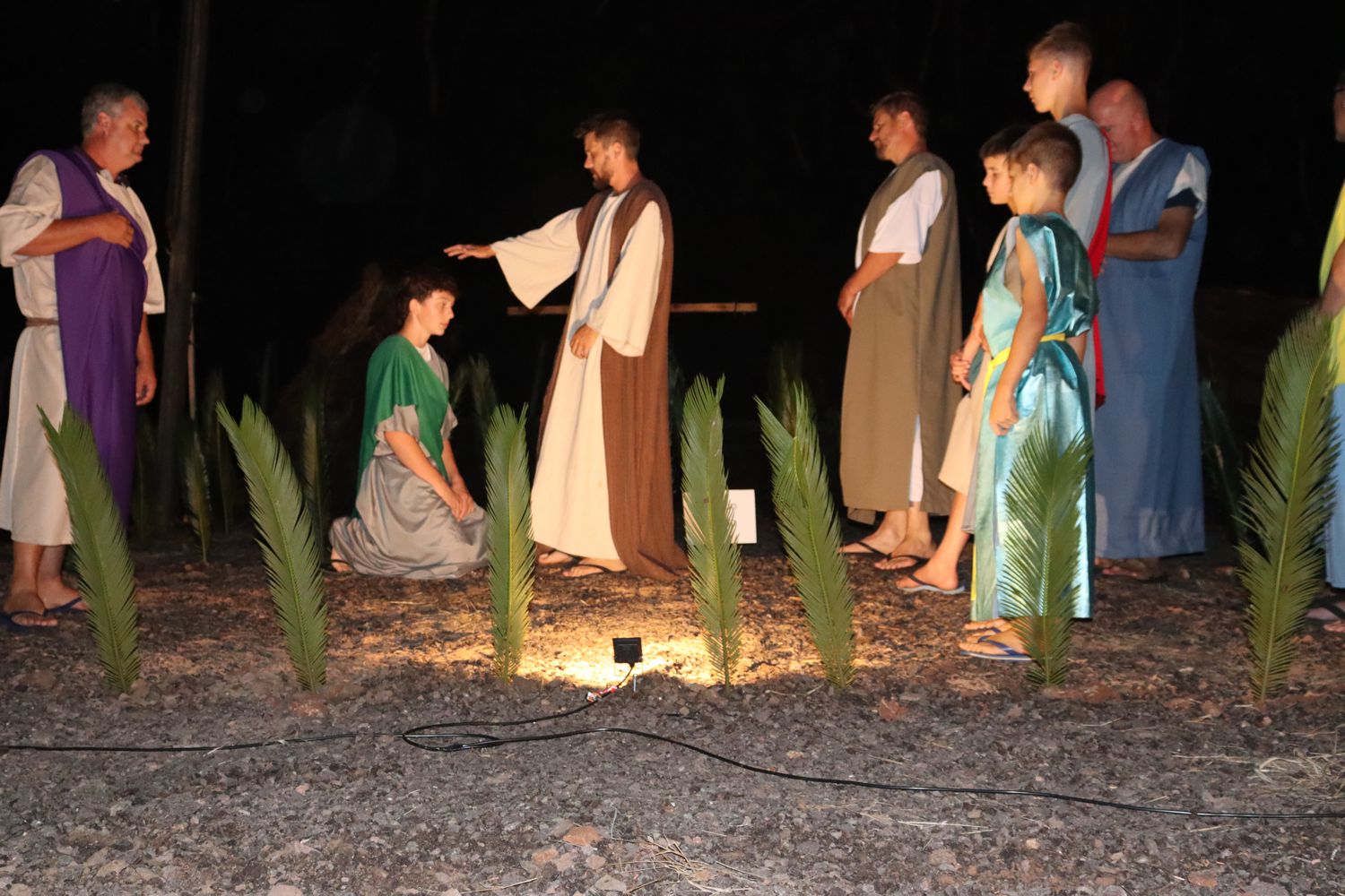 Durante aproximadamente 45 minutos, a encenação retratou cenas da vida de Jesus Cristo (interpretado por Lenon Klepker). Entre elas, estavam milagres, tais como a cura da mulher com fluxo de sangue, as curas de dois cegos, da pessoa muda, do leproso, do paralítico, além da ressurreição da filha de Jairo. O momento em que Jesus evita o apedrejamento de uma mulher acusada de adultério fez refletir sobre a forma como nós julgamos e como Deus julga as pessoas. Na sequência, ganharam destaque o lava-pés, a traição de Judas e a Última Ceia.