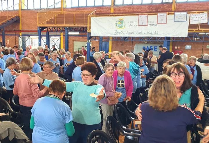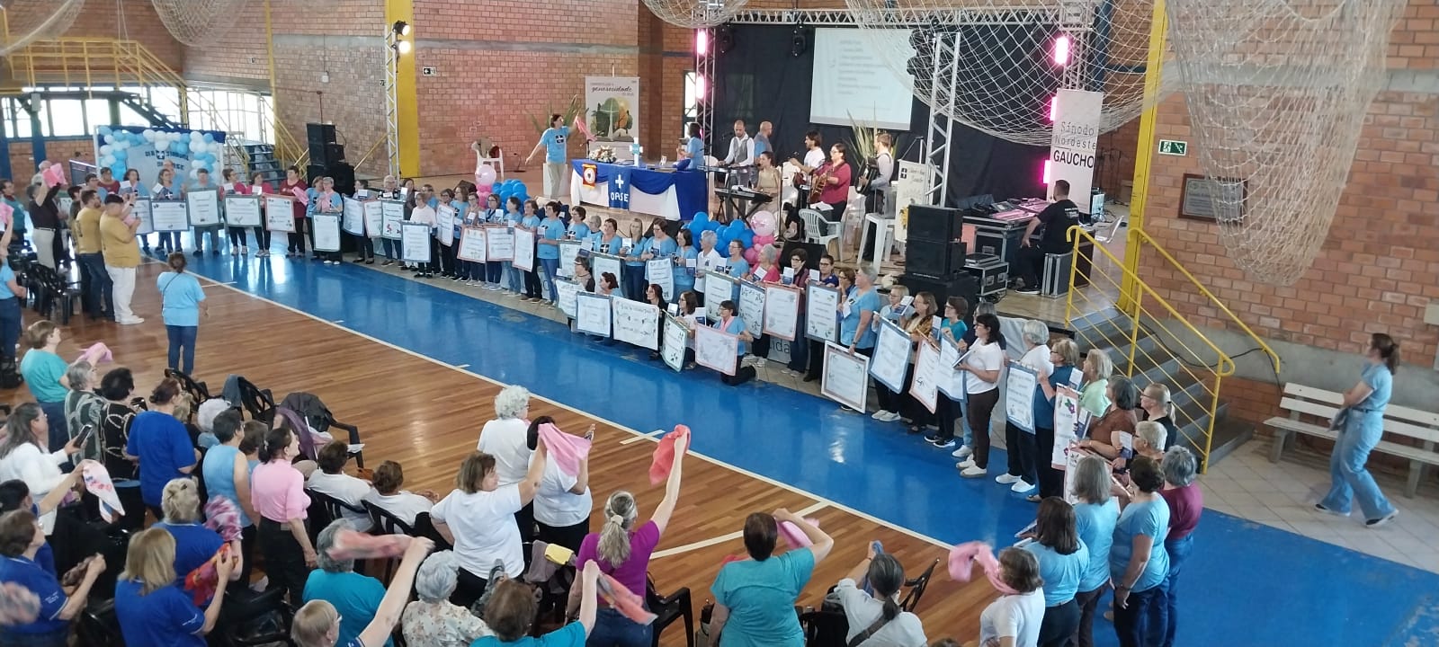 Elas foram chegando e ocupando o espaço reservado no Ginásio Municipal de São José do Hortêncio para a realização do Dia Sinodal da OASE. Cerca de 500 mulheres representando os 56 grupos de OASE acompanharam, entusiasmadas, as atividades do dia.