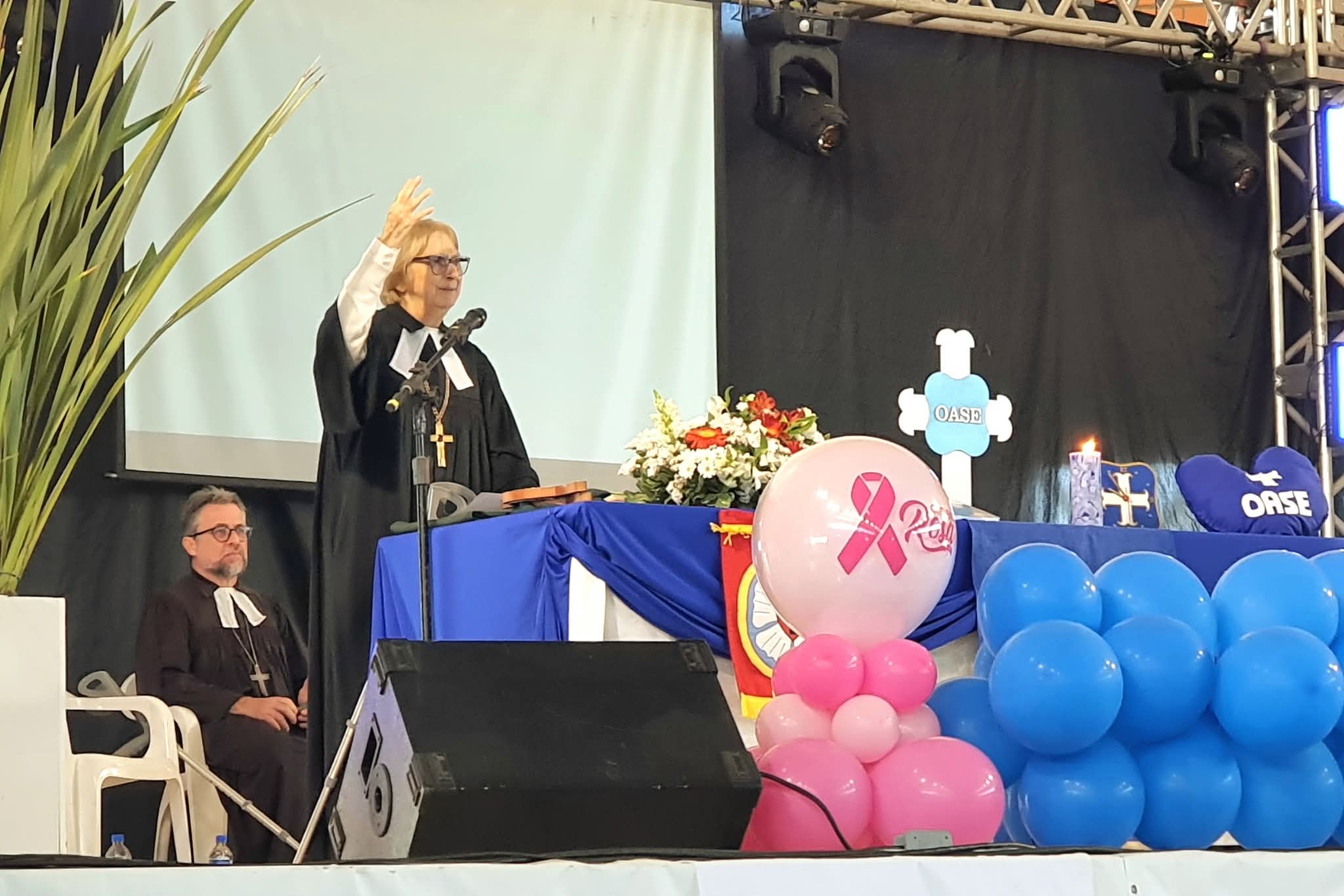A programação iniciou com uma celebração que teve destaque pela presença e pregação da Pastora Presidente, Silvia Beatriz Genz. O texto de Atos 16. 11-15 lembra do protagonismo das mulheres. Também outras histórias bíblicas, tanto no antigo como no novo testamento, relatam sobre a atuação de mulheres. A Pastora Silvia lembrou da presença e atuação de mulheres na história da Igreja e nas comunidades.
