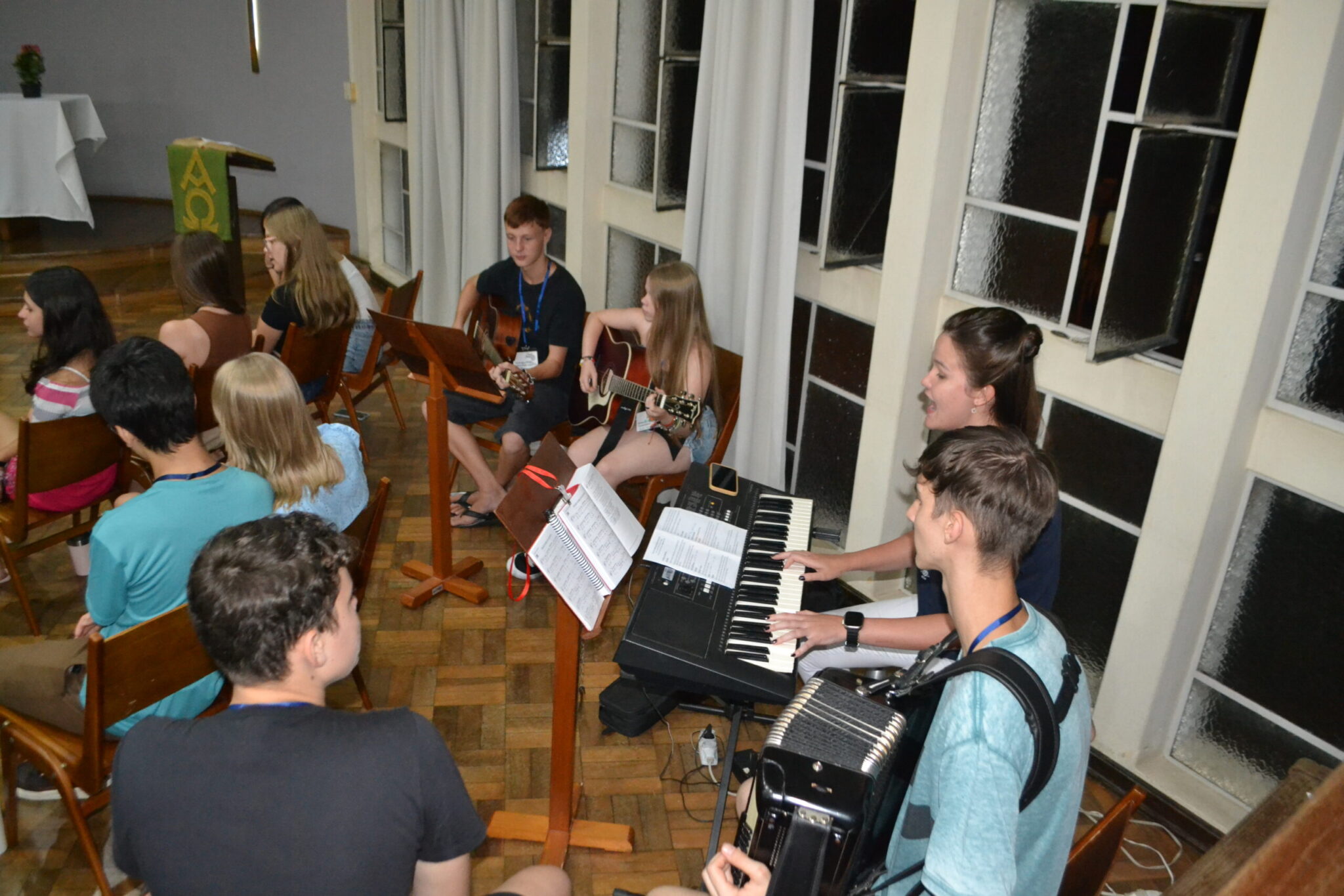 O primeiro dia foi marcado por atividades de integração e o culto de abertura, ministrado pela pastora Cleide Olsson Schneider e pelo pastor sinodal do Sínodo Nordeste Gaúcho, Eduardo Paulo Stauder, na capela do prédio S. Com base no texto bíblico de 1 Coríntios 12.12-31a, os jovens refletiram sobre sua importância dentro do âmbito da igreja. “No corpo humano, cada parte tem importância fundamental para o funcionamento do corpo um todo. Assim somos nós. Somos todos diferentes, mas fazemos parte de um só corpo, que é a Igreja de Cristo. E cada um e cada uma vez vocês, independente de suas diferenças e funções, é fundamental para manter este corpo funcionando”, pontuou a pastora Cleide Olsson Schneider.