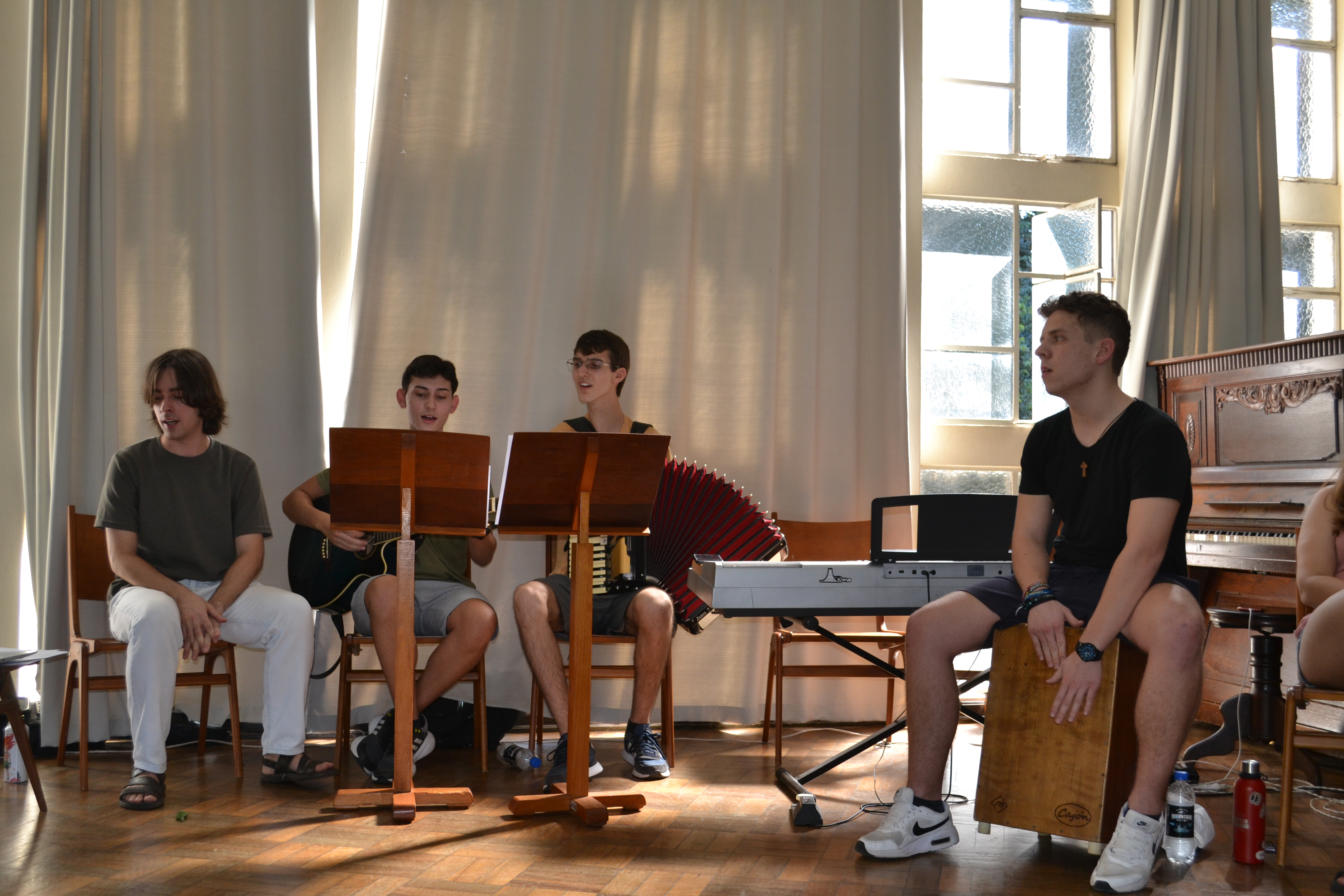 As pessoas jovens da Alemanha chegaram ao campus da Faculdades EST, em São Leopoldo, no final da manhã de segunda-feira, dia 9 de fevereiro, sendo recepcionados pelas pessoas jovens brasileiras. Já à tarde, na capela do prédio S, ocorreu a celebração de abertura do intercâmbio.