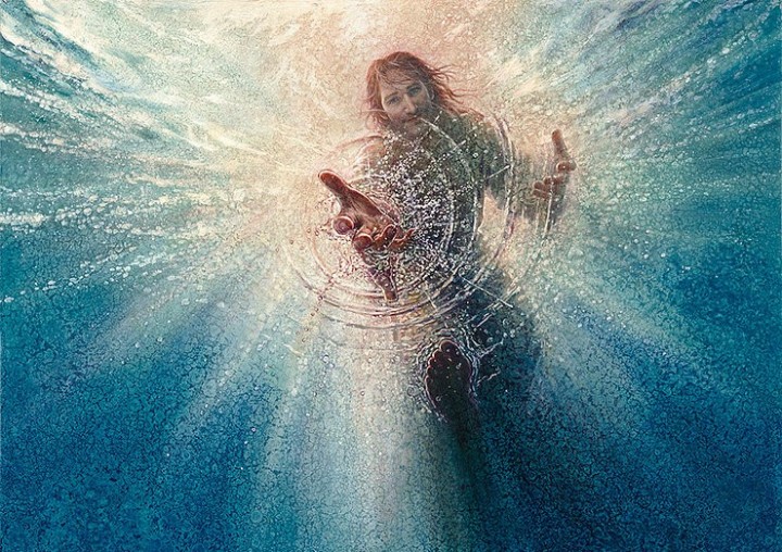 Outra história clássica está em Mt 14.22-33. Os discípulos atravessam o Mar da Galileia. Jesus vem atrás, caminhado sobre as águas. Ao se aproximar, eles suspeitam que Jesus fosse um “fantasma”. Jesus se identifica. Pedro quer se encontrar com Jesus sobre as águas. Jesus o chama. Pedro vem, com os olhos fixos no Mestre, mas quando repara no vento e nas ondas, começa a submergir. Ele grita, então, pedindo socorro. O que aprendemos aqui? O desvio da palavra de Jesus traz morte. Todavia, Jesus sempre está de mão estendida, pronto para salvar. Mas, como pode? Os discípulos em sua lida diária, com certeza, já haviam enfrentado muitos temporais e se livrado. Porque justo naquela noite precisariam da ajuda do montanhês chamado Jesus. Pedro, é óbvio, não sabia caminhar sobre as águas, mas como pescador, com certeza, sabia boiar e nadar muito bem. Poderia voltar tranquilo ao barco. Mas, o medo e o desespero lhe causariam a destruição, caso Jesus não estivesse presente estendendo sua mão.