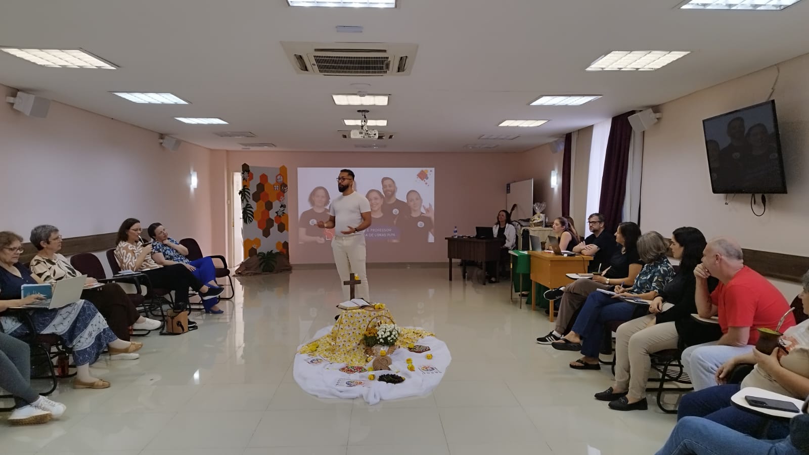 Ainda contribuindo com a formação das pessoas presentes, o Prof. Esp. Victor Pacheco apresentou a temática Bullying e Cyberbullying – Bullying, cultura digital e a resposta cristã. O desafio lançado foi: “educar é uma obra de amor, que exige a linguagem da repetição, com firmeza e ternura”.