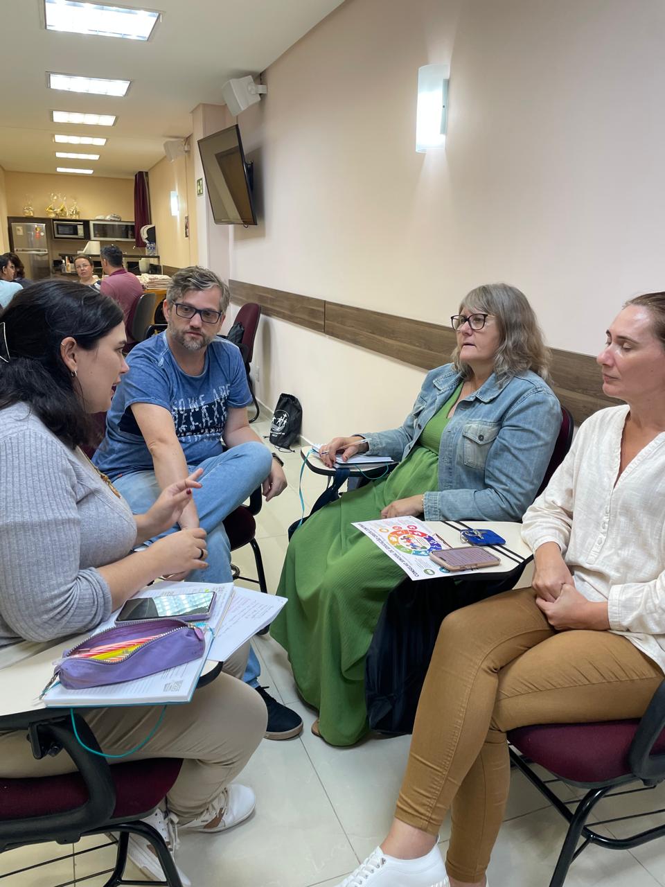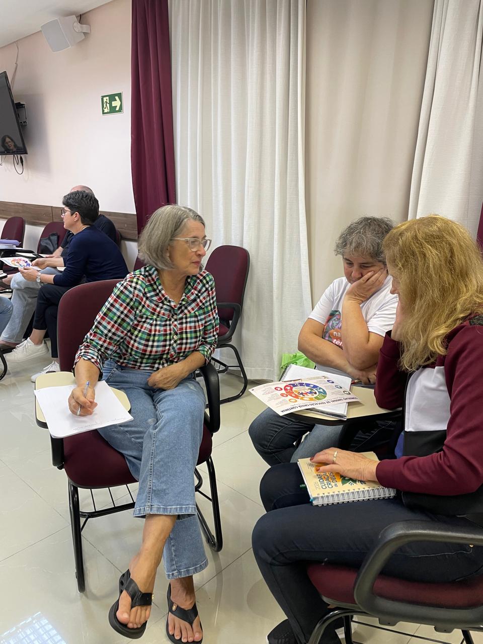 Também, a Pa. Carmen Michel conduziu a reflexão sobre o uso da linguagem inclusiva, destacando a força das palavras na vida comunitária quer seja animando ou silenciando as vozes e as vidas das pessoas. O modo como nos expressamos pode contribuir ou não para o acolhimento e o sentimento de pertença.