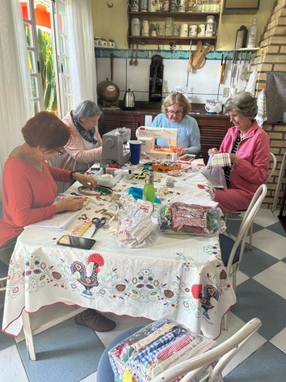As costuras e aplicações criativas nos panos de louças ocuparam o dia inteiro. O trabalho delas, rendeu. Confeccionaram 22 peças. Mas isso não é tudo. Elas se encontrarão mais uma vez para produzir mais um tanto destas belezas.