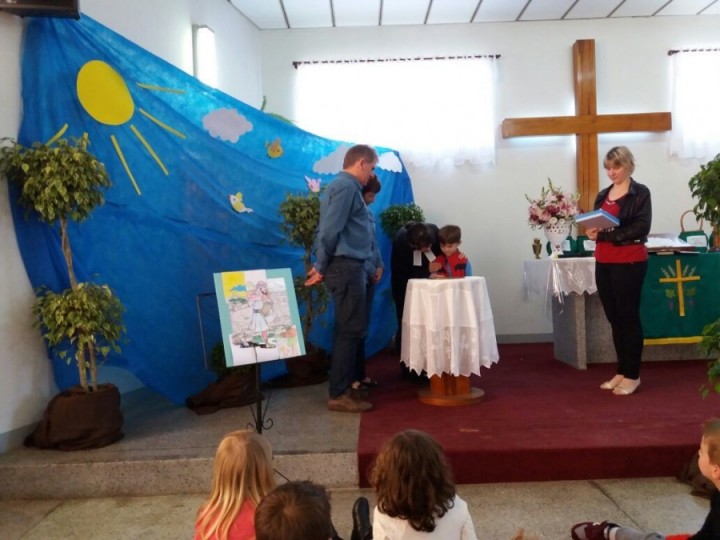 As igrejas foram decoradas e a pastoral do batismo levou para o altar a encenação do culto. As palavras da nossa querida pastora Rosangela Fenner dita com cuidado sobre o tema do culto , que esse ano era a Parábola do Semeador conduzia as crianças a participar do culto, e aprender de forma lúdica a plantar a sementinha do bem e do amor de Deus.