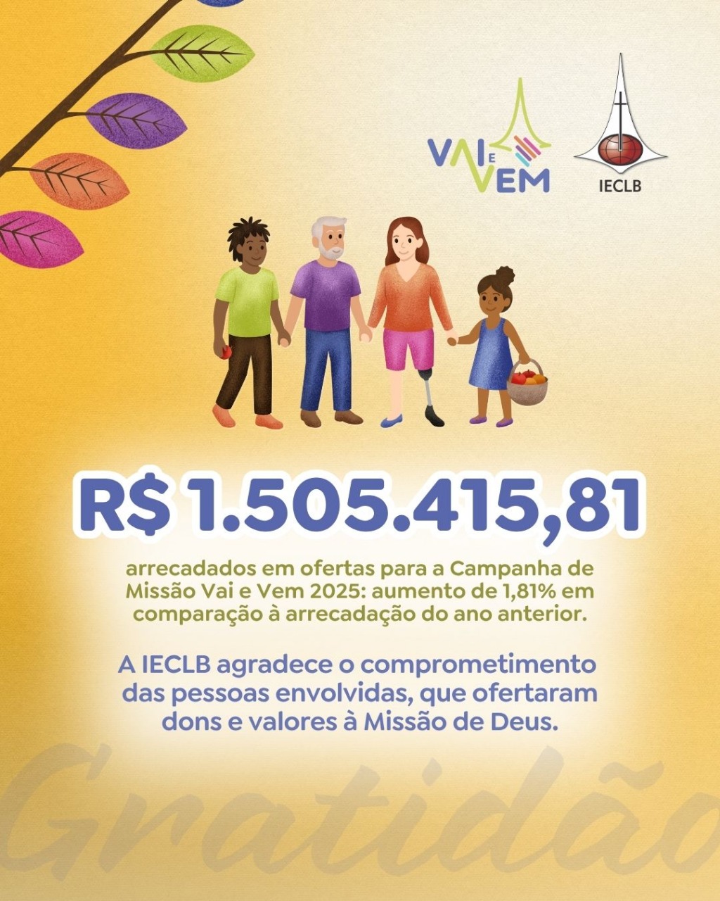 A IECLB agradece a todas as pessoas e comunidades que, com fé e compromisso, contribuíram para a Missão de Deus. Cada gesto de generosidade fortalece a caminhada missionária e faz diferença na vida de muitas pessoas.