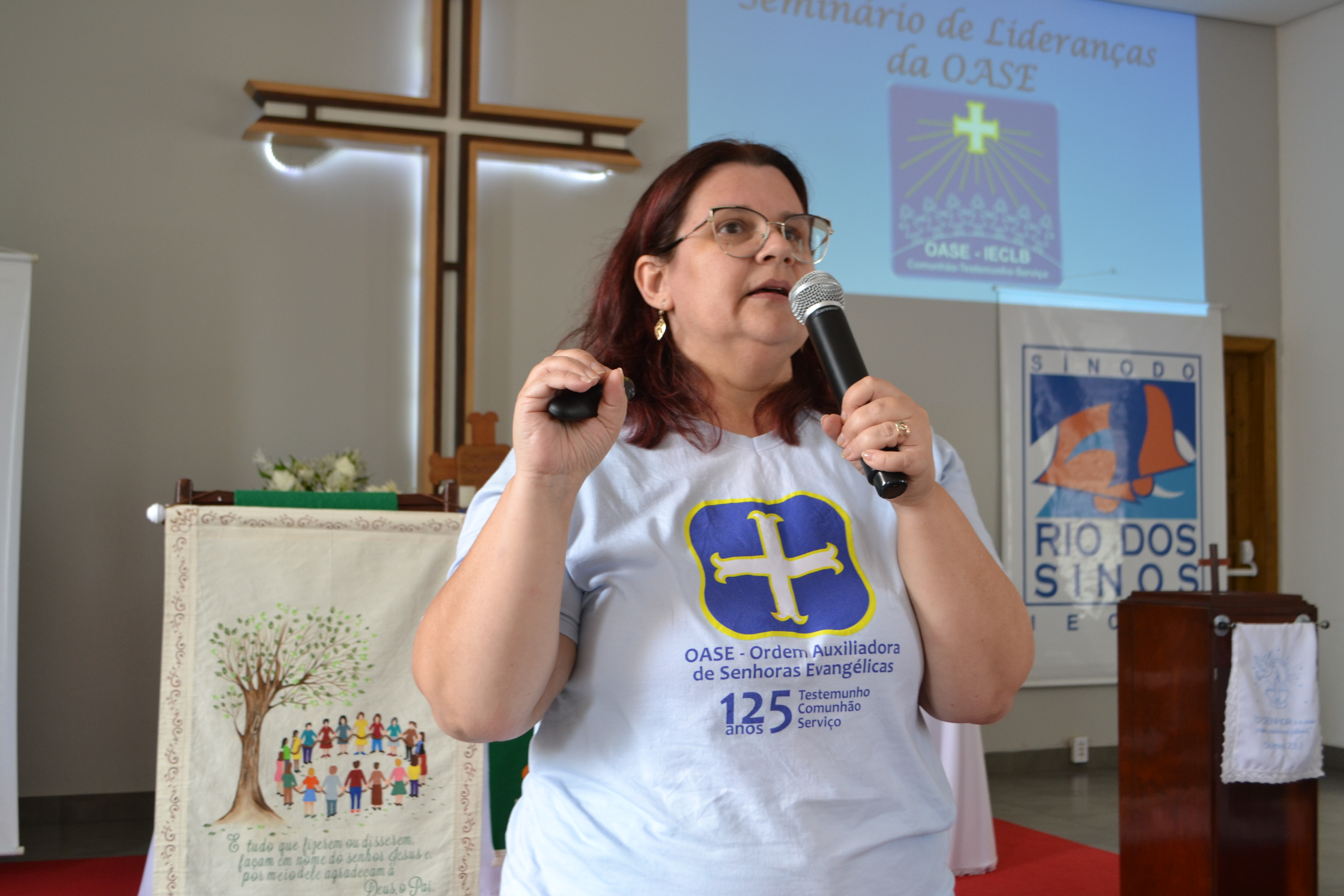 O refrão do hino da Ordem Auxiliadora de Senhoras Evangélicas (OASE) – “Somos OASE: a Deus agradecemos. Jubilamos com alegria e gratidão. Que entre nós continue abençoando, o testemunho, o serviço e a comunhão!” – resume um pouco do que as lideranças dos grupos de OASE do Sínodo Rio dos Sinos vivenciaram no dia 13 de novembro. Na ocasião, ocorreu no Seminário Sinodal de Lideranças da OASE, tendo como local a Comunidade Evangélica de Confissão Luterana Bom Pastor, em Esteio.