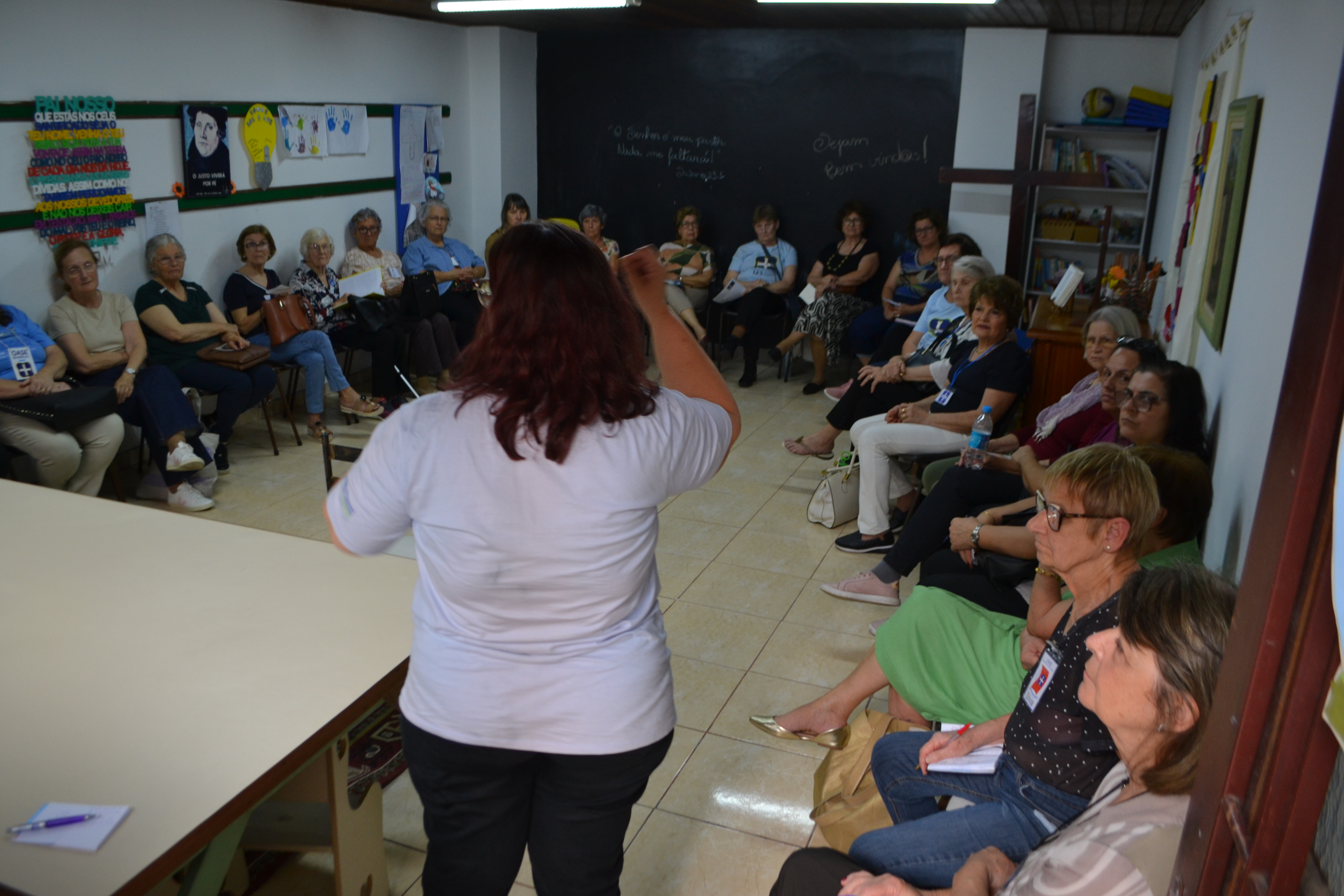 Ao longo do dia, reflexões, cantos de alegria, partilhas no grande grupo e nos específicos das presidentes, das secretárias e das tesoureiras deixaram o dia ainda mais especial. O tradicional café da OASE e o almoço preparado pela Comunidade Bom Pastor com o auxílio das integrantes do grupo local deram um sabor especial ao encontro.