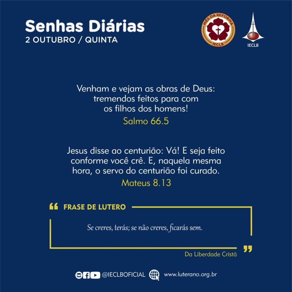 Mateus 8.13 – Jesus disse ao centurião: Vá! E seja feito conforme você crê. E, naquela mesma hora, o servo do centurião foi curado.