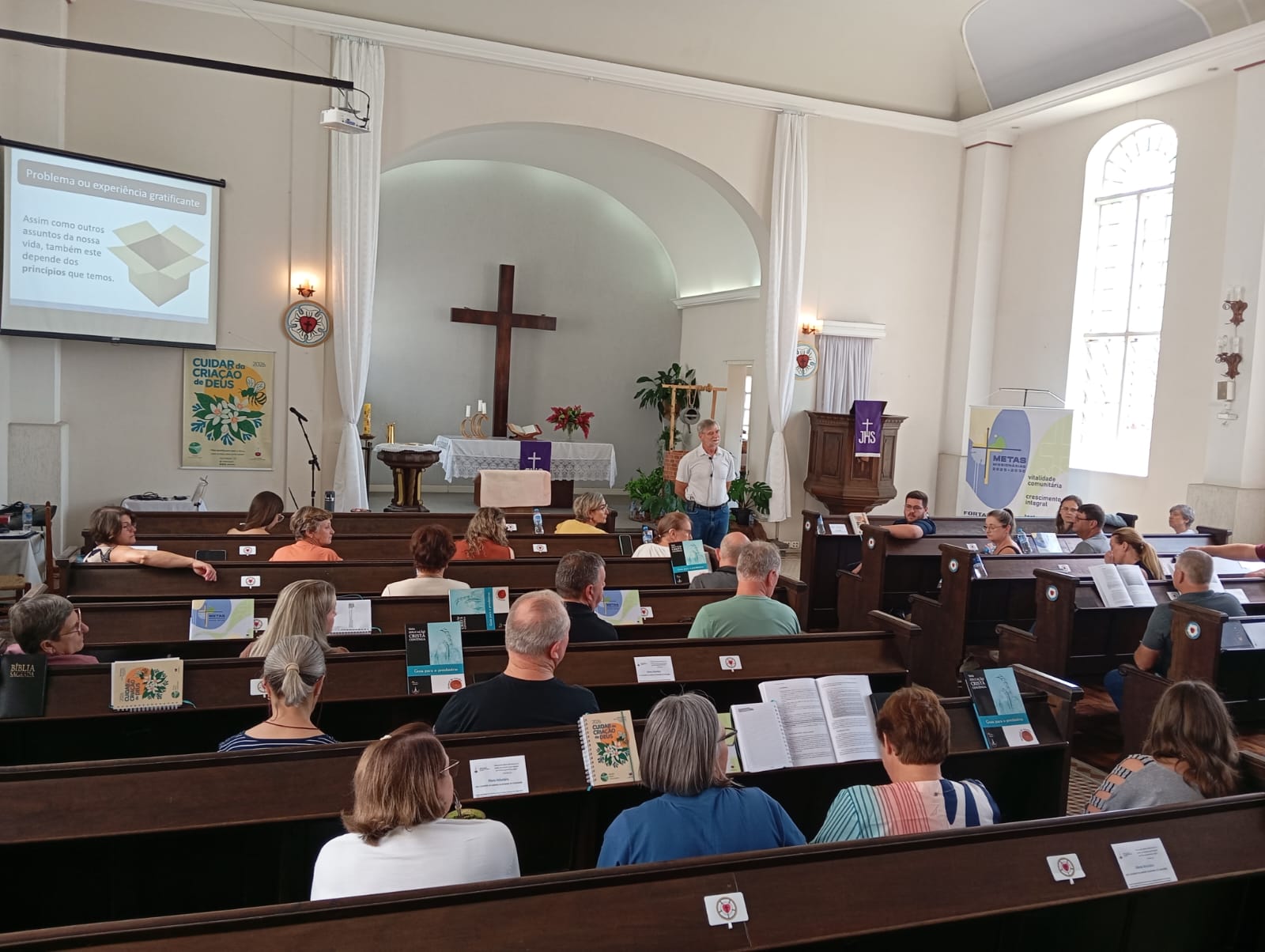 Para presbíteros e presbíteras, o tema específico foi “Privilégio de servir”, também conduzido Pastor Nilo. O assessor ressaltou biblicamente a relevância da contribuição como uma das formas de agradecer e cooperar com a missão de Deus. Também focou em outras temáticas do Guia do Presbitério motivando o uso deste material para embasar as ações comunitárias que envolvem o exercício de liderar. Foi apresentada a Agenda Sinodal como fonte de informações relevantes para a gestão comunitária.