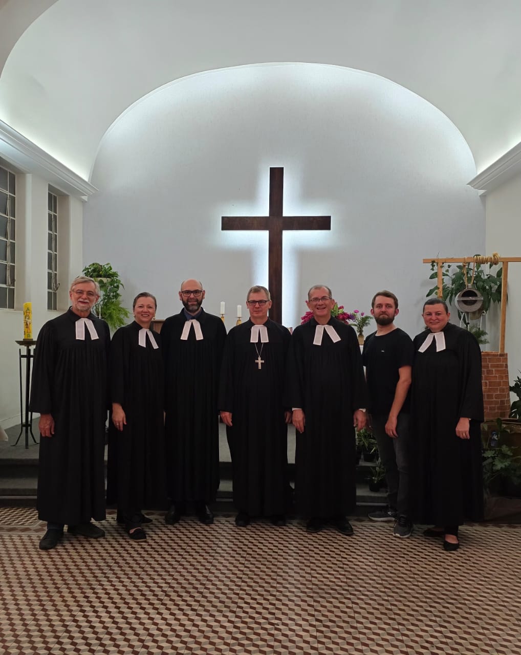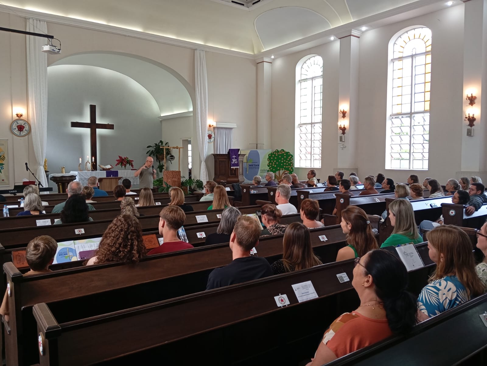 Assim, nos dias 27 e 28 de fevereiro e 1º de março de 2026, na Comunidade Pentecostes, em Porto União/SC, aconteceu o I Encontro de Líderes. Contou com a participação de todas as Paróquias do Núcleo, ministras e ministros, totalizando 91 pessoas. O encontro foi conduzido pela Pa. Dra. Dione Carla Baldus (coordenadora do Núcleo) e pelo P. Ildo Franz (vice-coordenador do Núcleo). A meditação inicial, com o foco voltado para o Tema do Ano da Igreja, foi conduzida pelo Pastor Sinodal Dr. Claudir Burmann.