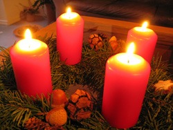 COROA DE ADVENTO – ADVENTO quer dizer tempo da chegada. O que era esperado se aproxima, está para acontecer, chegou a hora de se concretizar. Cada domingo de advento acendemos uma vela na coroa e lembramos:
