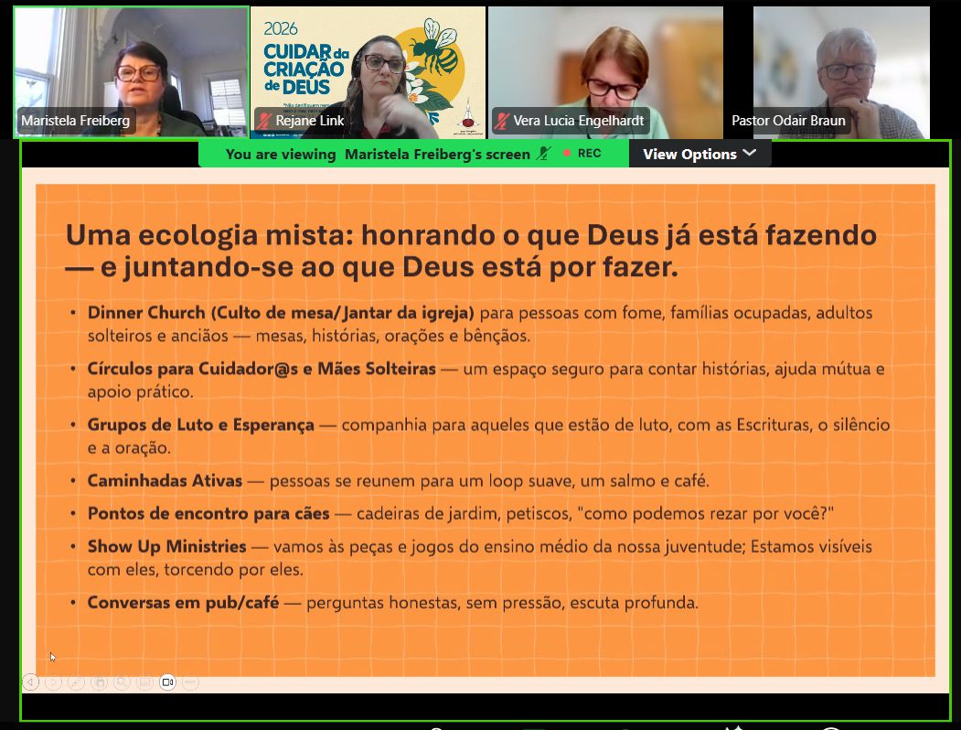 No último dia 8 de abril, os Grupos de Trabalho (GTs) sobre Evangelização, Profissão de Fé, Vitalidade Comunitária e Formação de Novas Comunidades tiveram um encontro que conectou a realidade brasileira com experiências transformadoras dos Estados Unidos da América. A convidada especial foi a pastora Maristela Freiberg, que atua há mais de 25 anos na Evangelical Lutheran Church in America (ELCA), no Sínodo de Nova Jersey. O grupos de trabalho foram criados e são acompanhados pela Secretaria de Missão da Igreja Evangélica de Confissão Luterana no Brasil (IECLB).